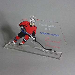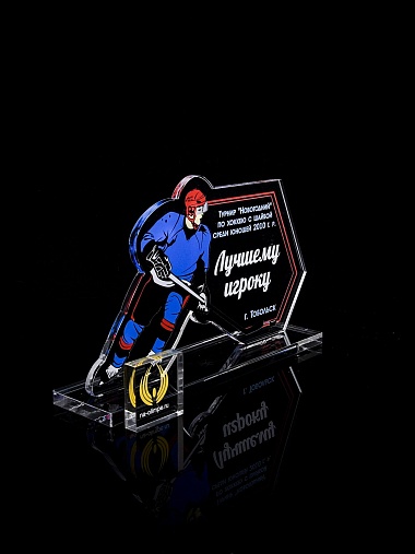 Приз из акрила хоккей 53-135 с цветной печатью , высота 13.5 см