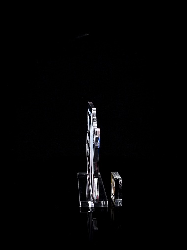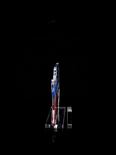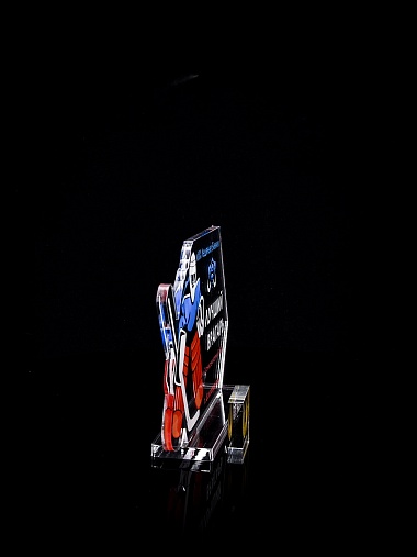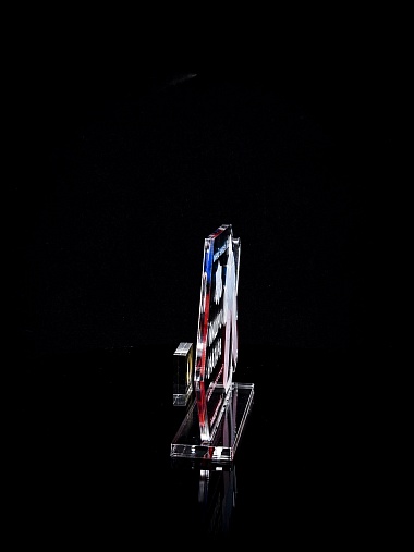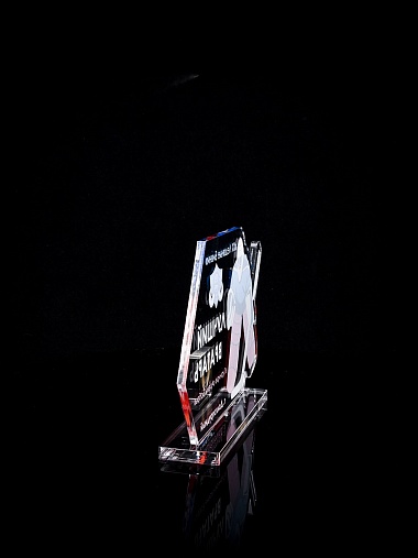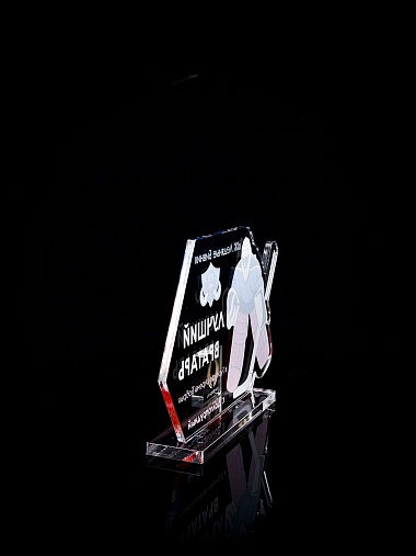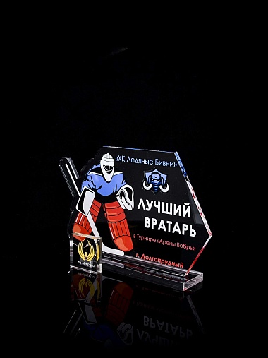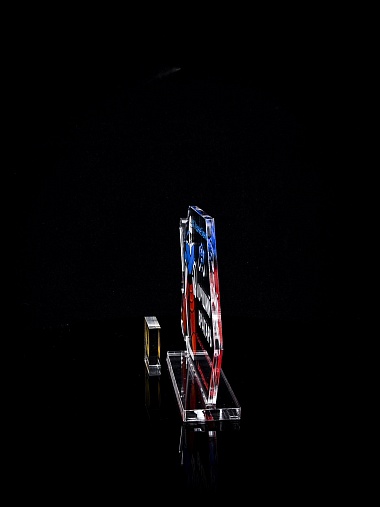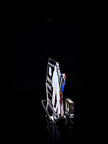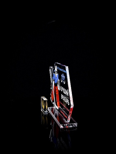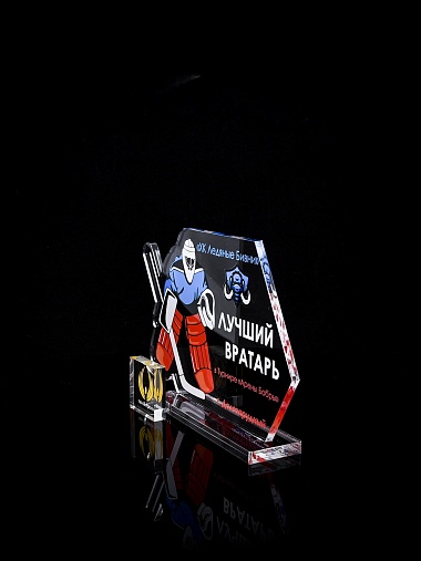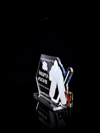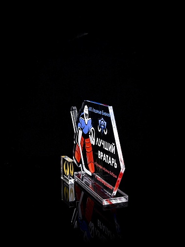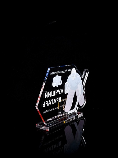 Приз из прозрачного акрила с цветной печатью. Расцветка формы, как и текст, могут быть любыми, согласно Вашим пожеланиям
