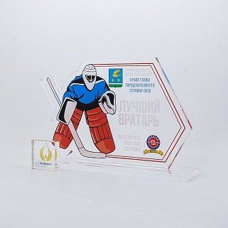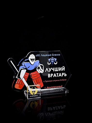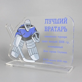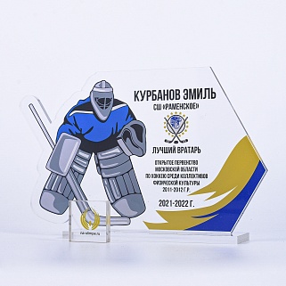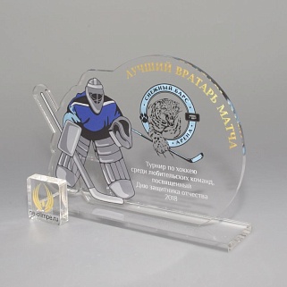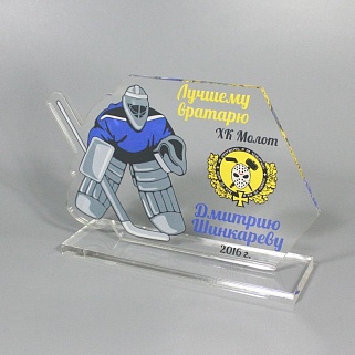 Приз из акрила хоккей 54-135 с цветной печатью , высота 13.5 см