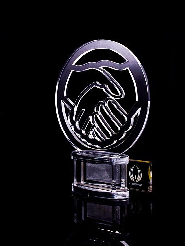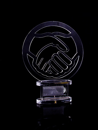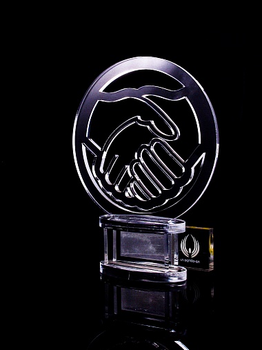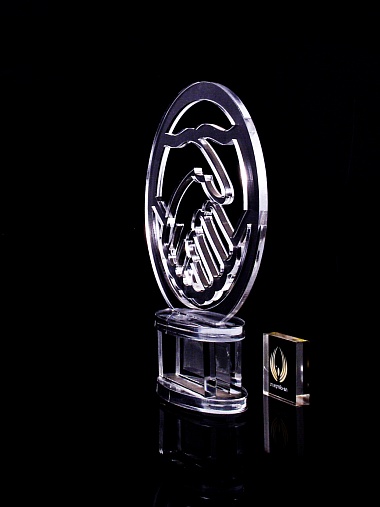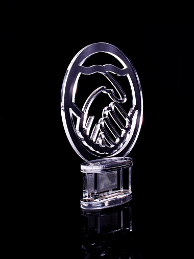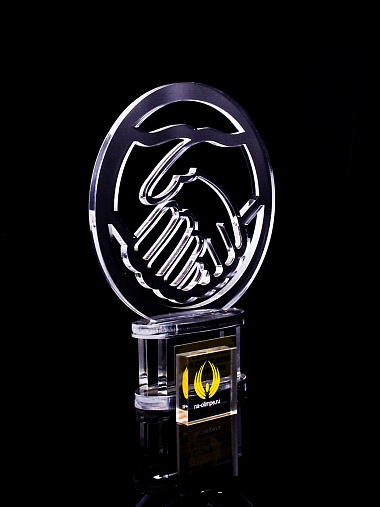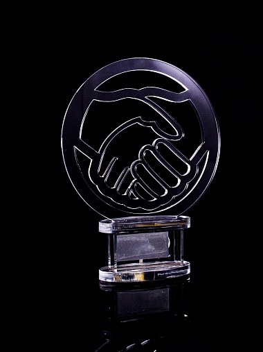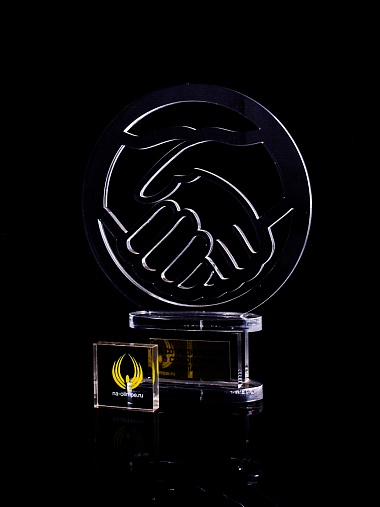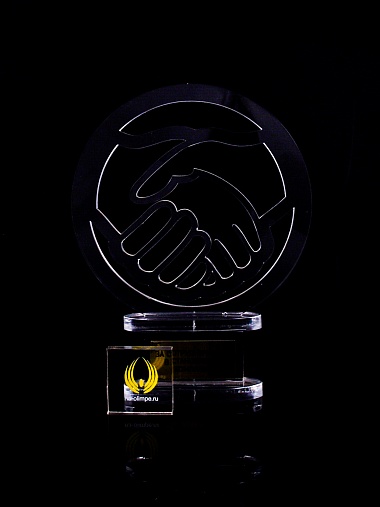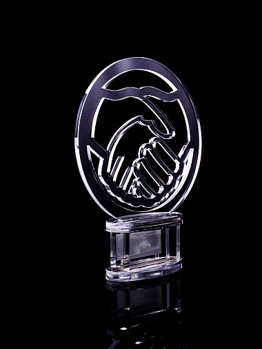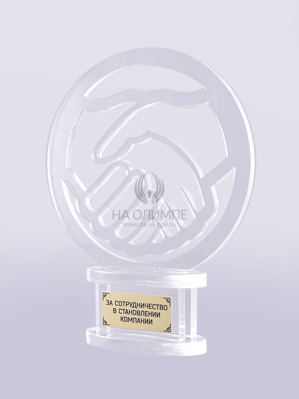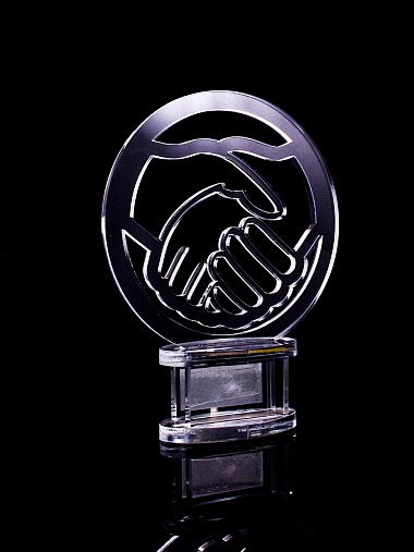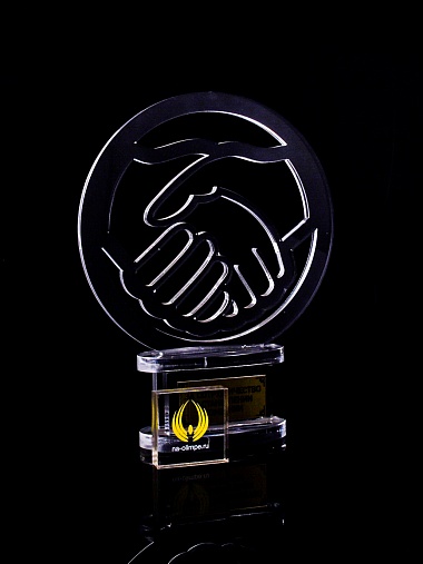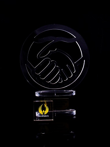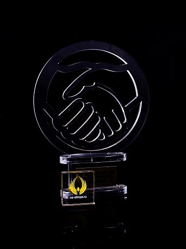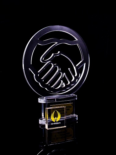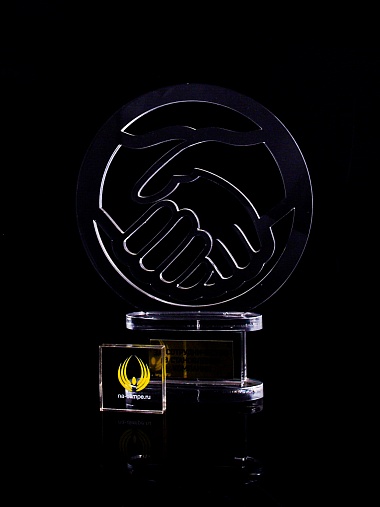 Приз из акрила Рукопожатие (60) с табличкой, высота 20 см