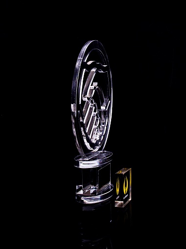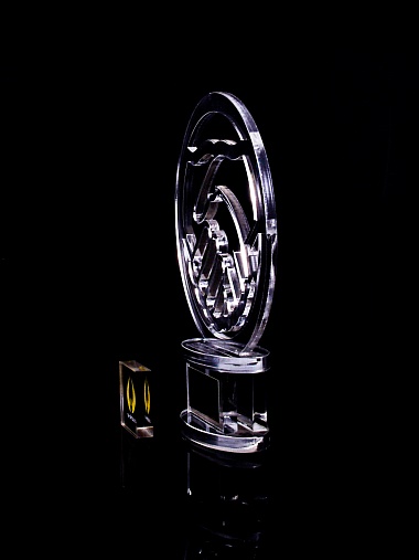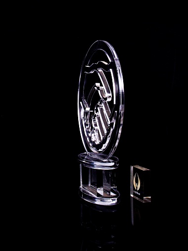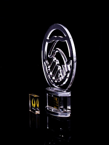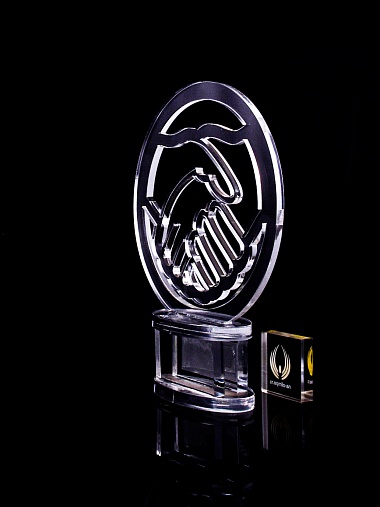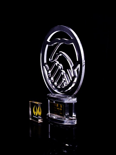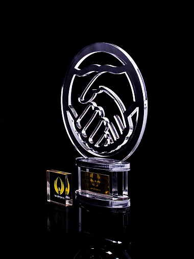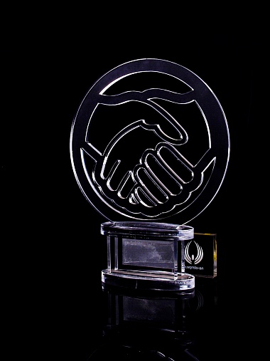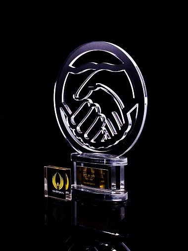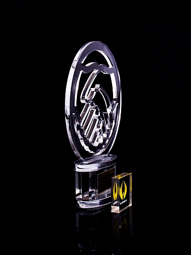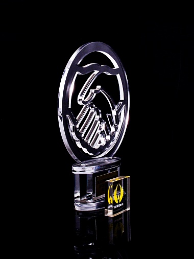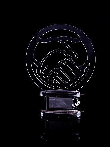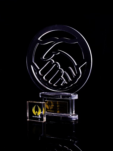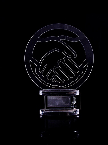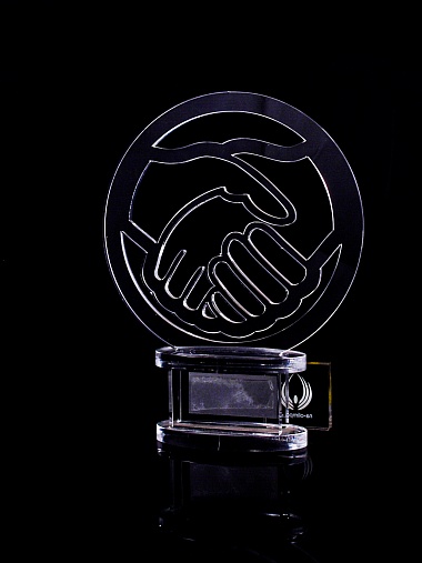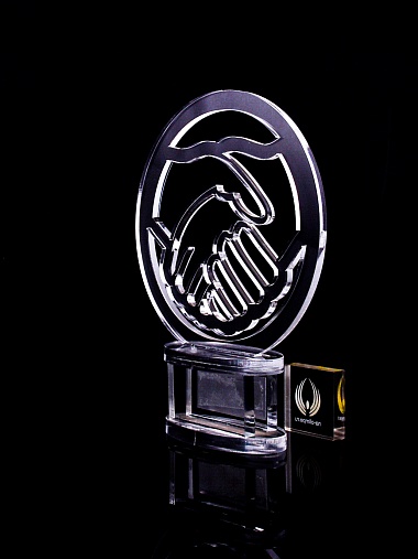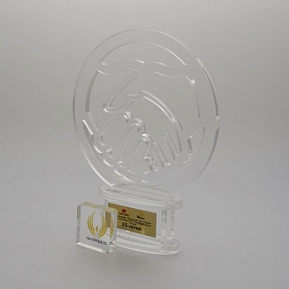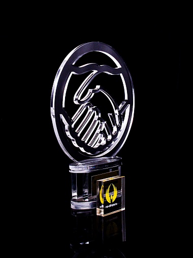 Приз из акрила Рукопожатие (60) с табличкой, высота 20 см