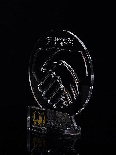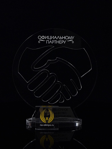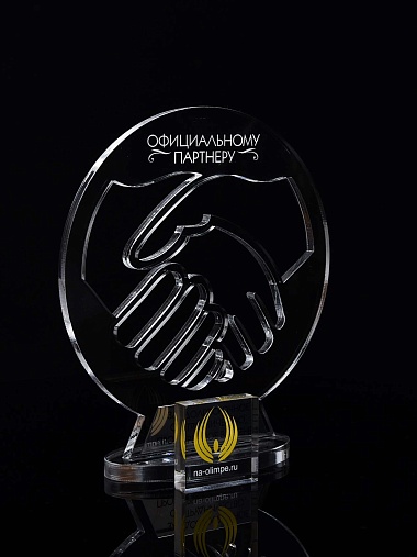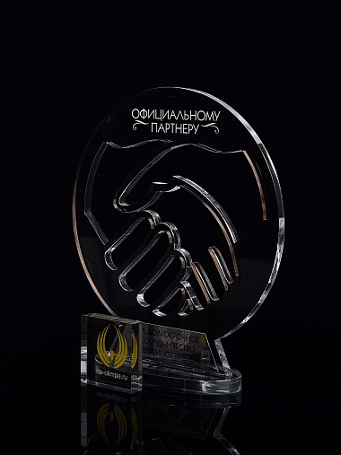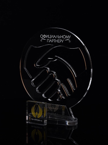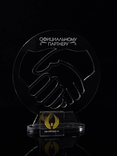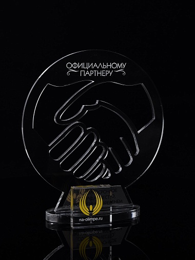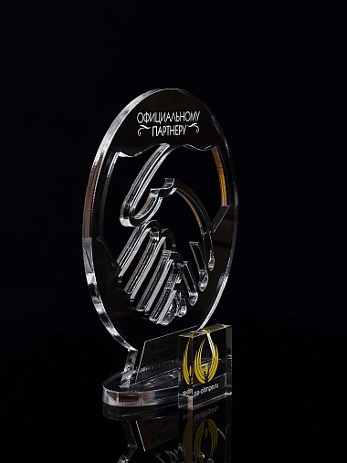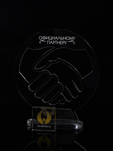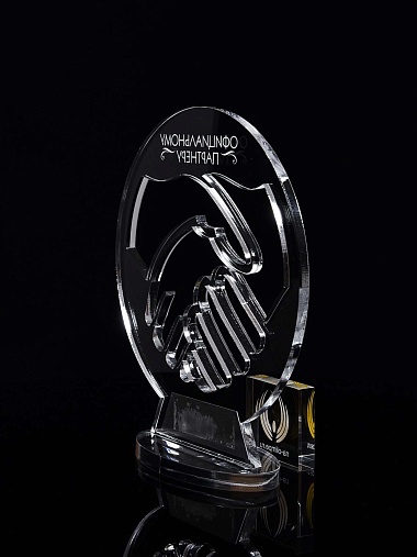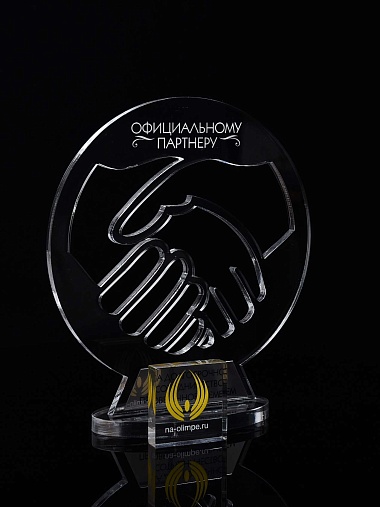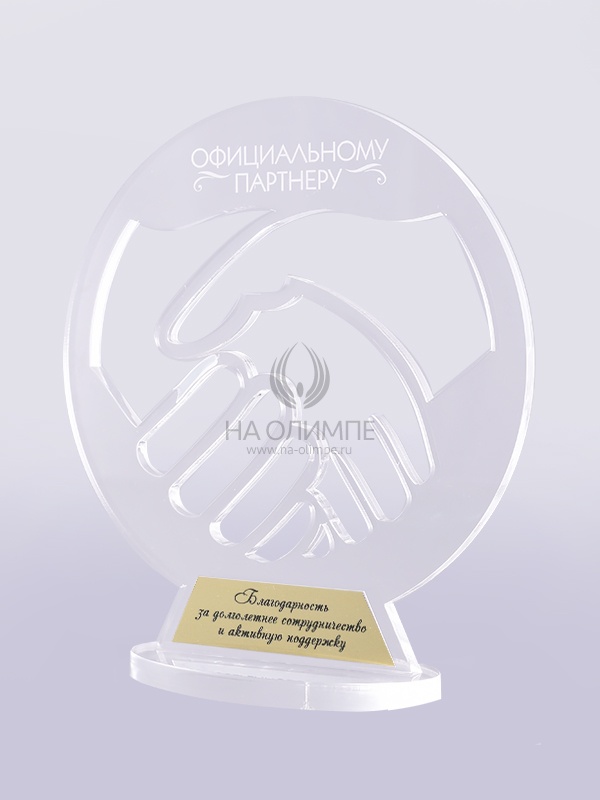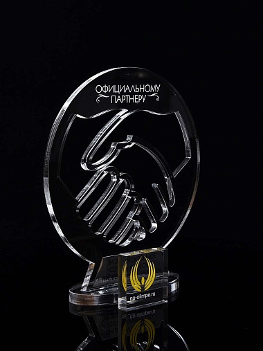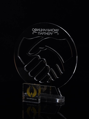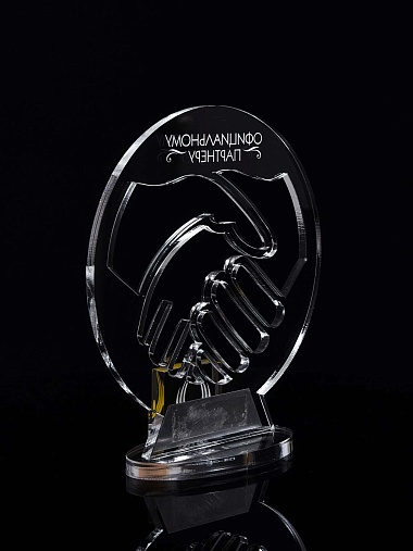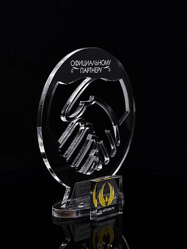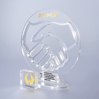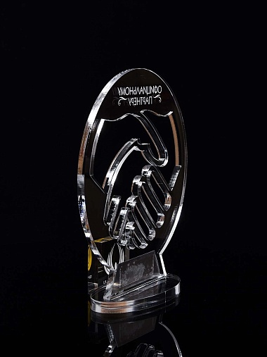 Приз из акрила Рукопожатие (61) с гравировкой и табличкой, высота 17 см