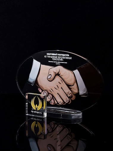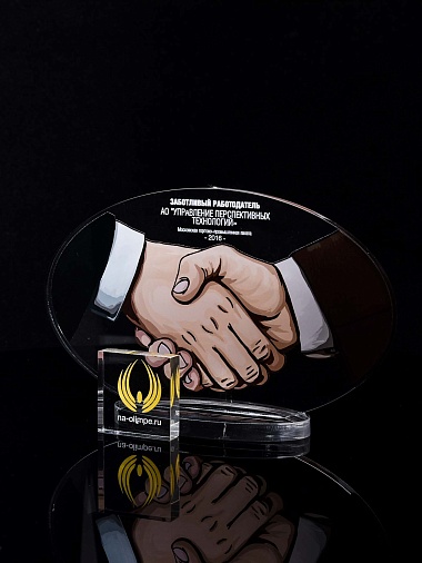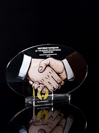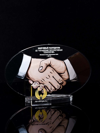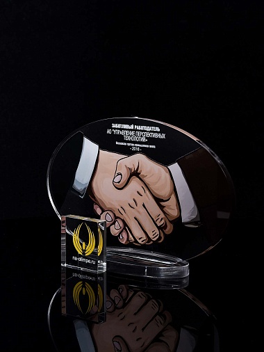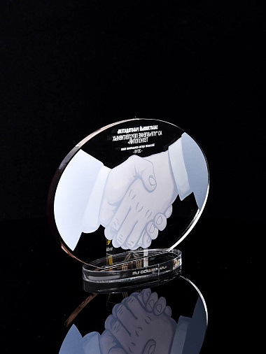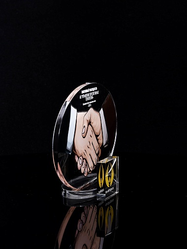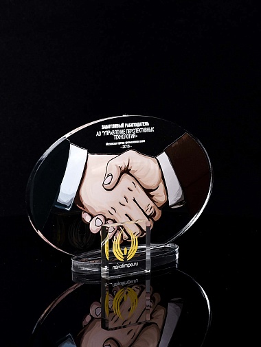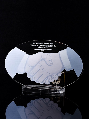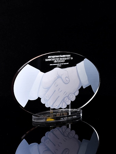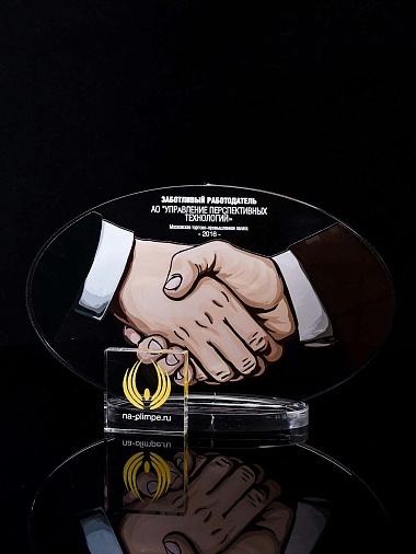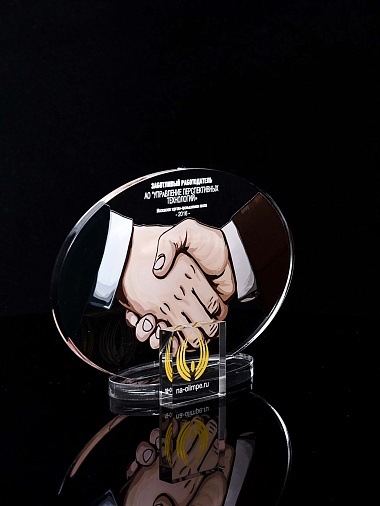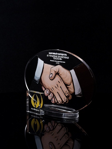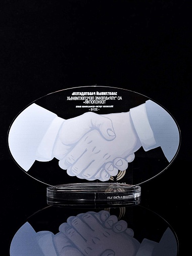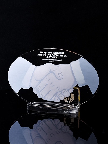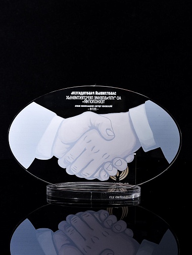 Приз из акрила Рукопожатие (62) с цветным нанесением, высота 11 см