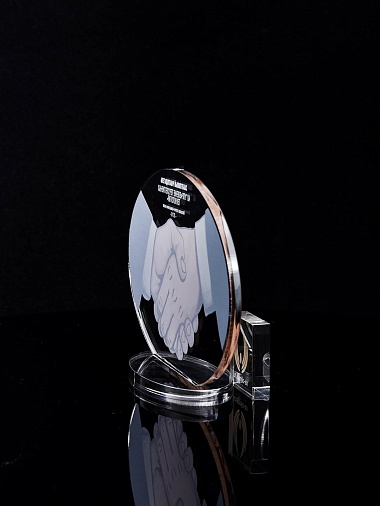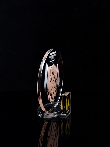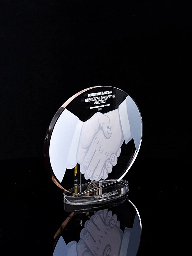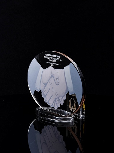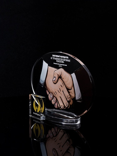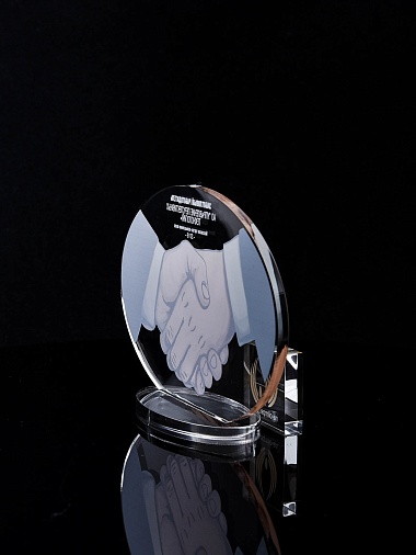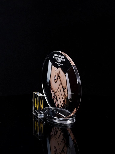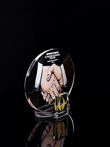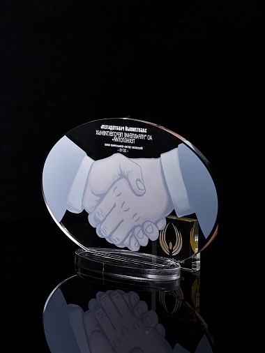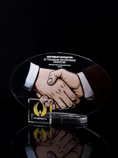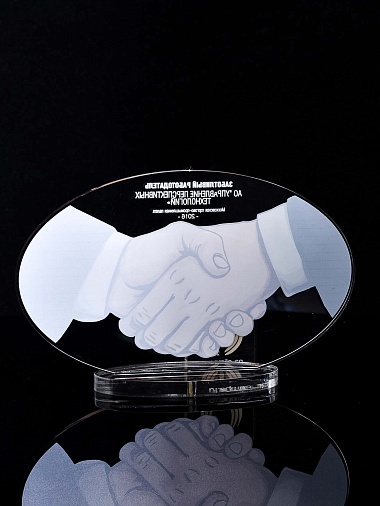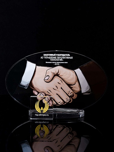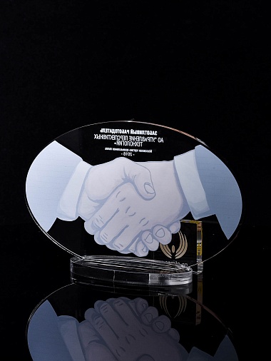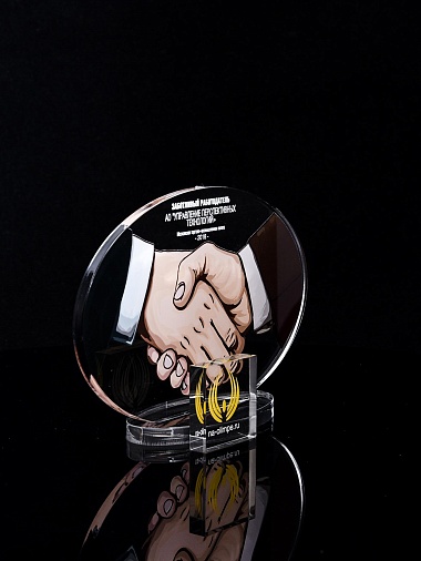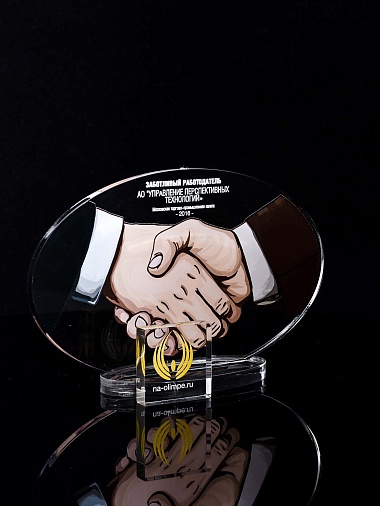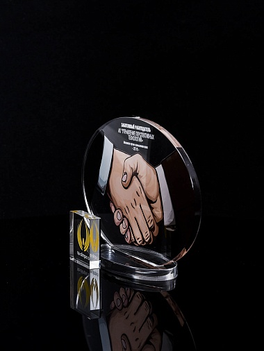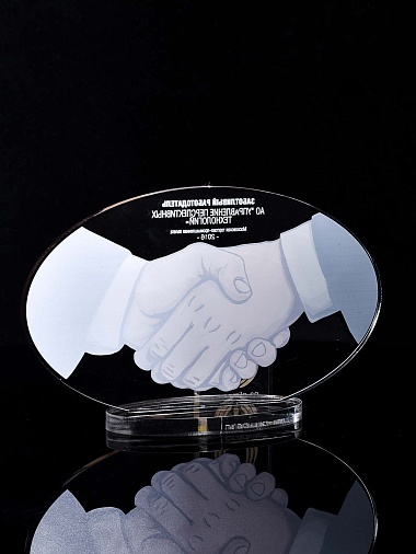 Приз из акрила Рукопожатие (62) с цветным нанесением, высота 11 см