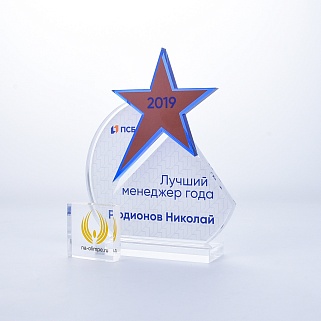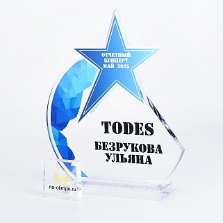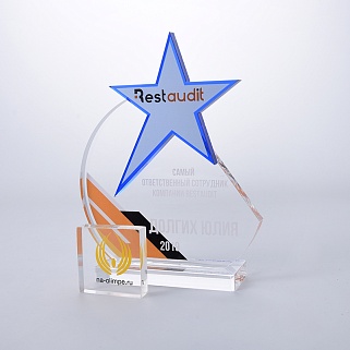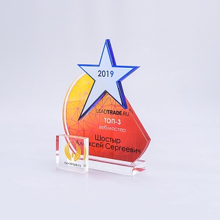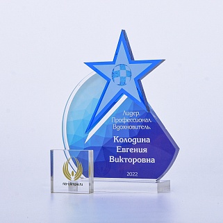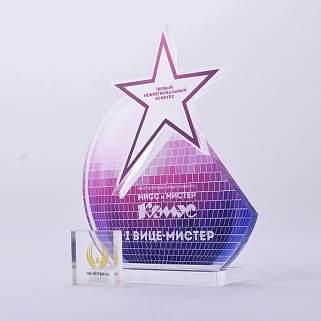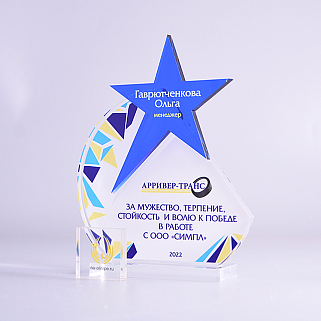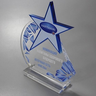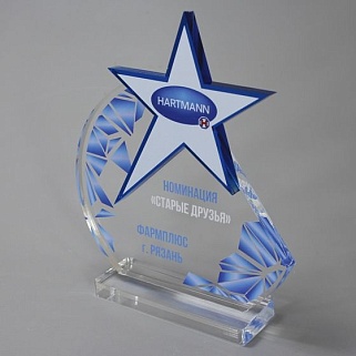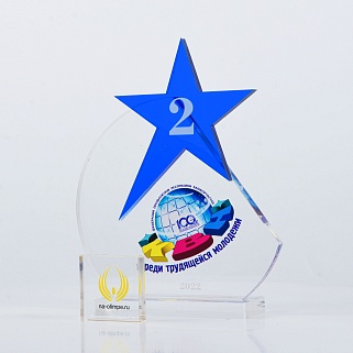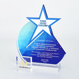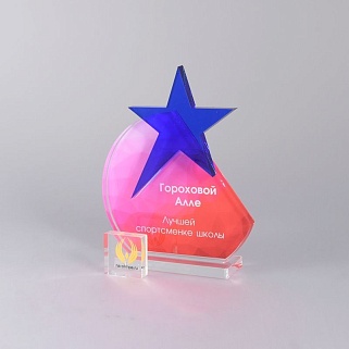 Приз из акрила Звезда 64Bl-150 с цветной печатью, высота 15 см