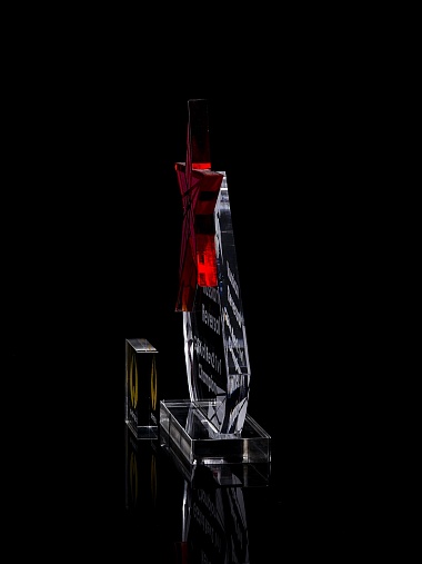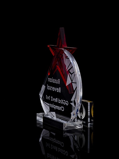 Приз из прозрачного акрила с гравировкой.