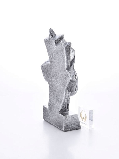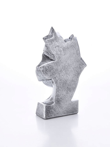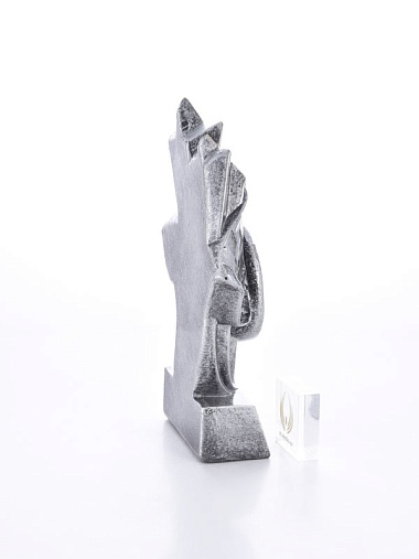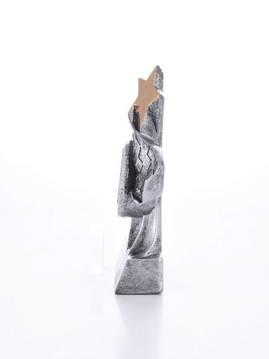 Литая фигура из металлизированного пластика на металлическом каркасе. Транспортировочная коробка в комплекте.