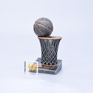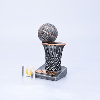 Литая фигура из металлизированного пластика на металлическом каркасе. Транспортировочная коробка в комплекте.