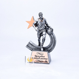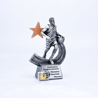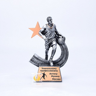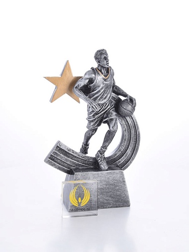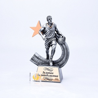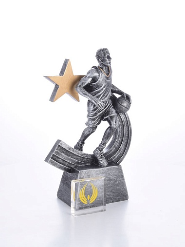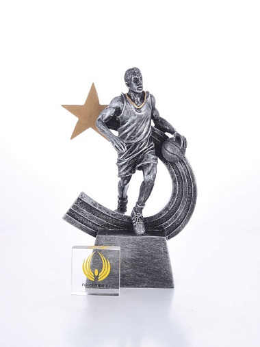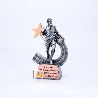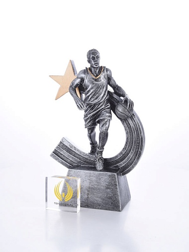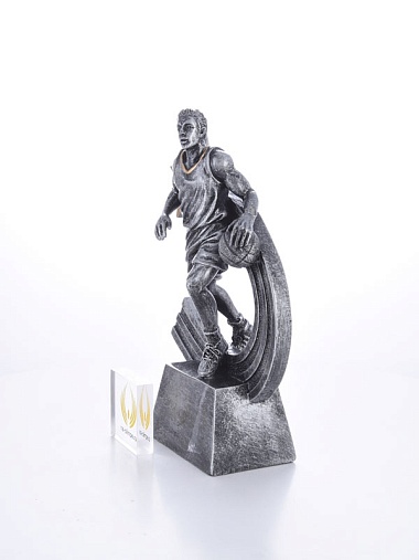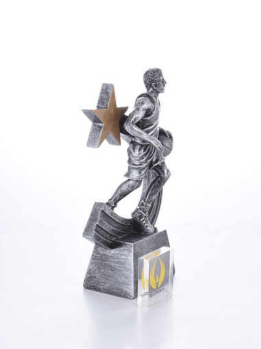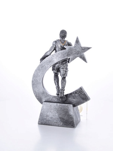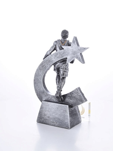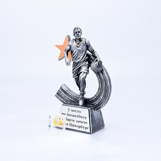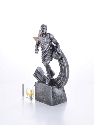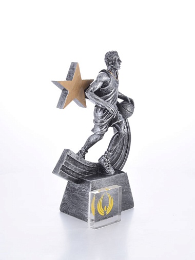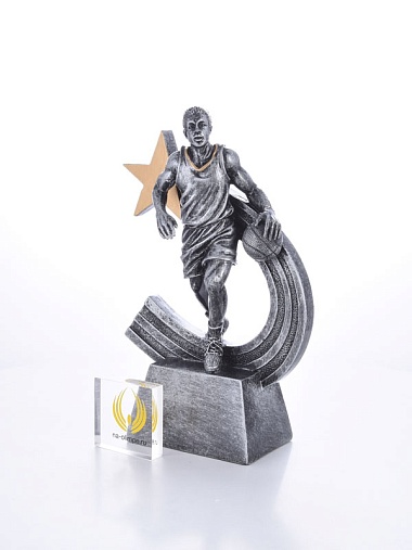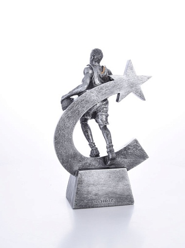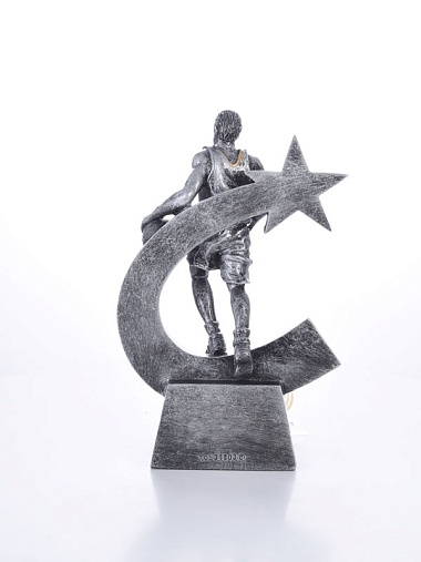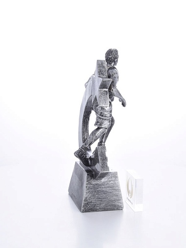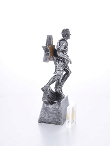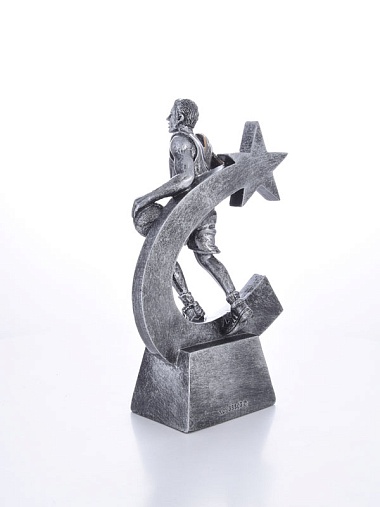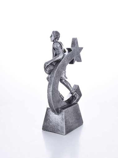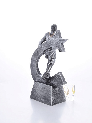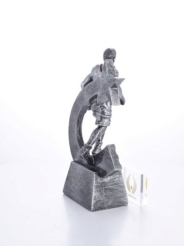 Литая фигура из металлизированного пластика на металлическом каркасе. Транспортировочная коробка в комплекте.