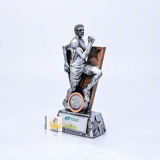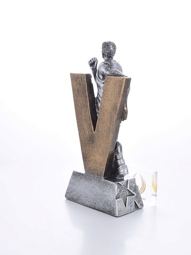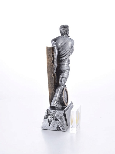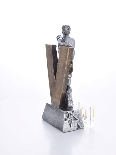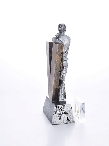 Литая фигура из металлизированного пластика на металлическом каркасе. Транспортировочная коробка в комплекте.