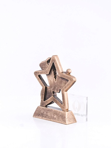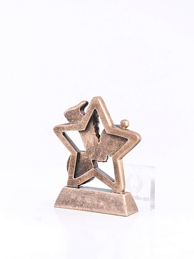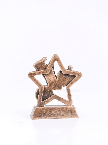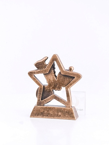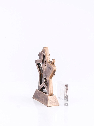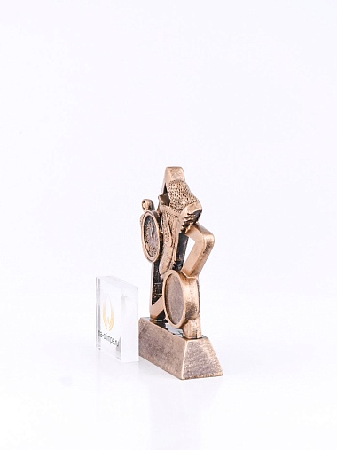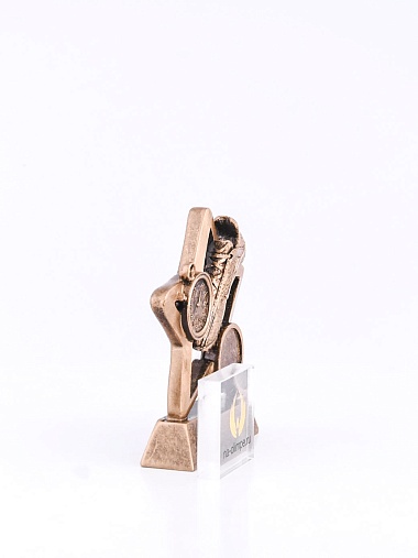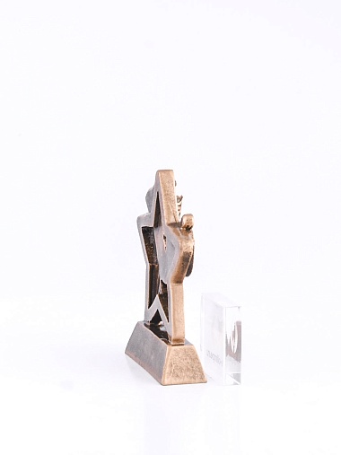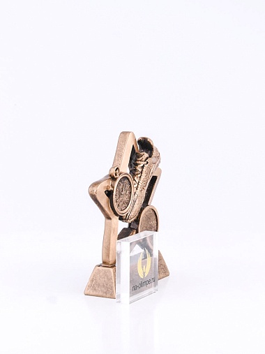 Литая фигура из металлизированного пластика на металлическом каркасе. Транспортировочная коробка в комплекте. Вес фигурки без коробки 100гр.