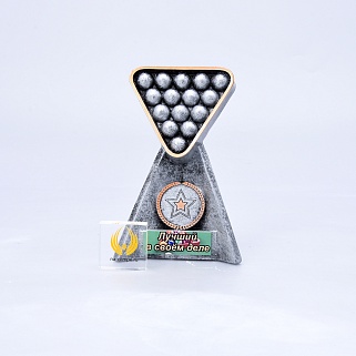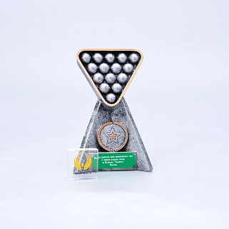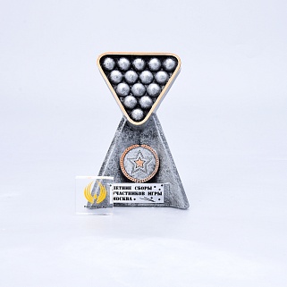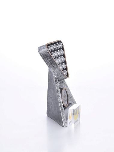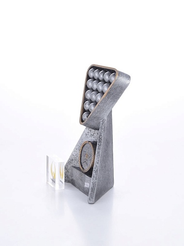 Литая фигура из металлизированного пластика на металлическом каркасе. Транспортировочная коробка в комплекте.