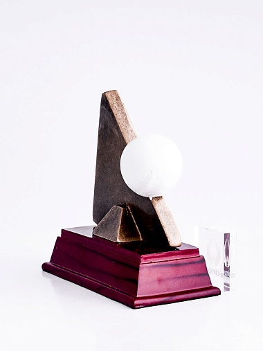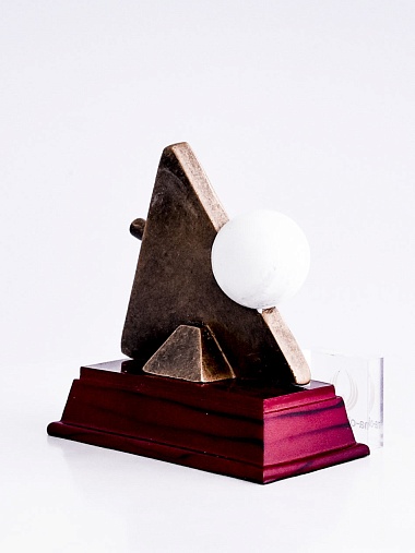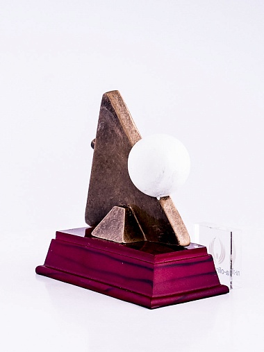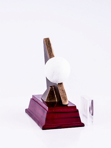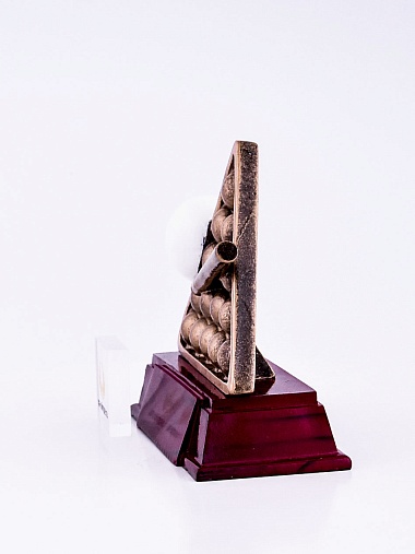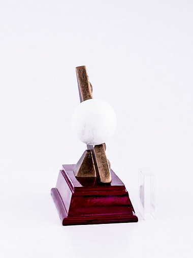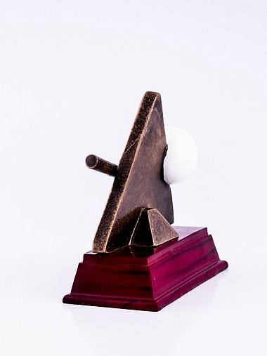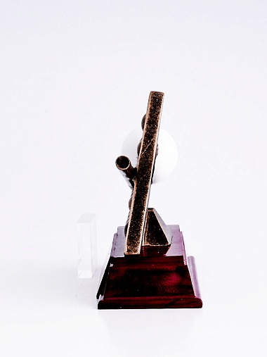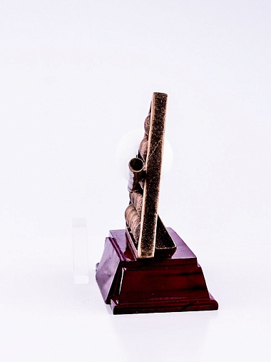 Литая фигура из металлизированного пластика на металлическом каркасе. Транспортировочная коробка в комплекте. Вес фигурки без коробки 530гр.