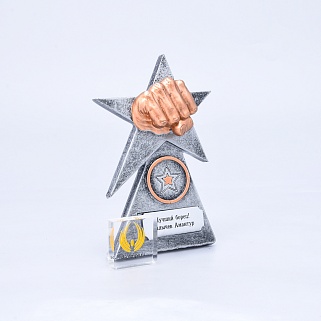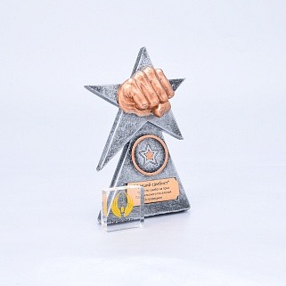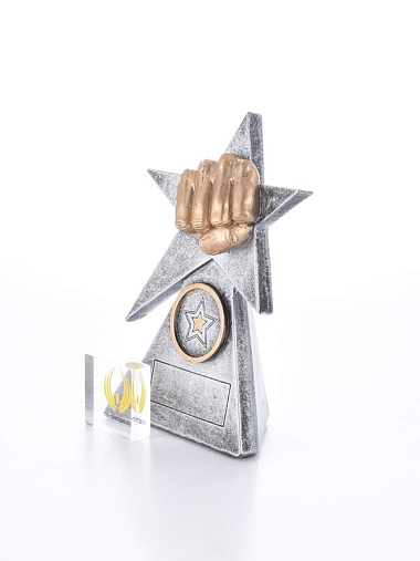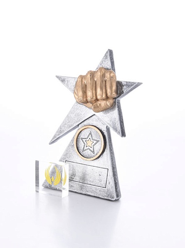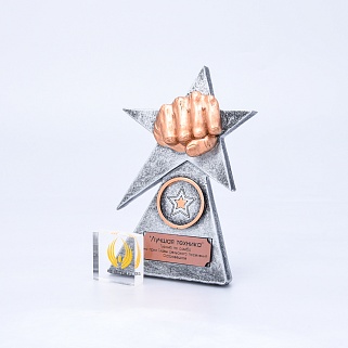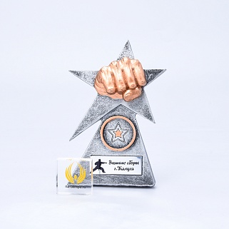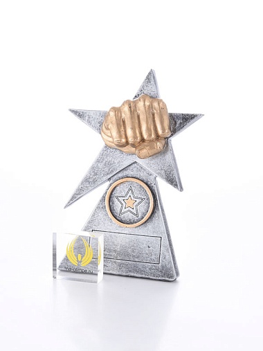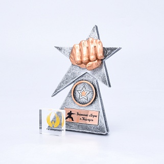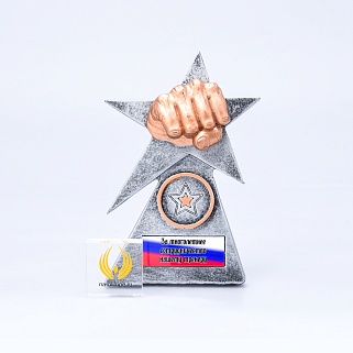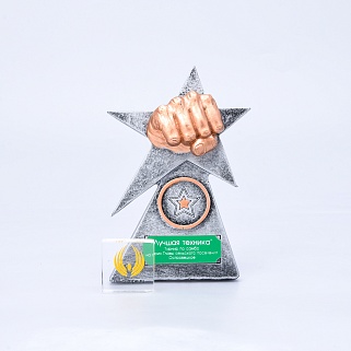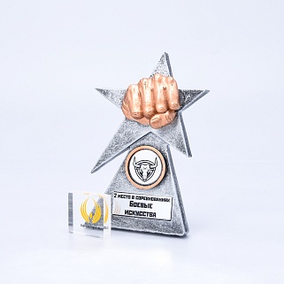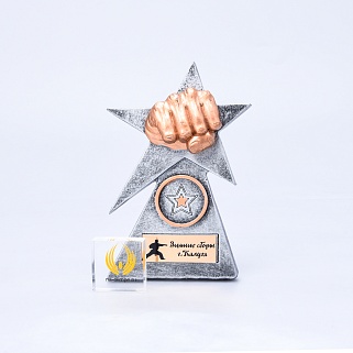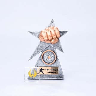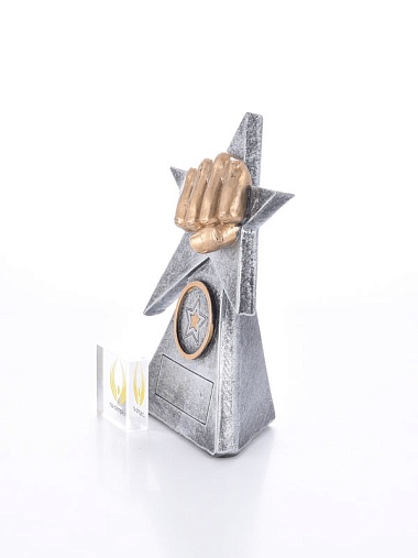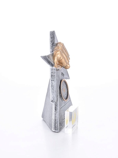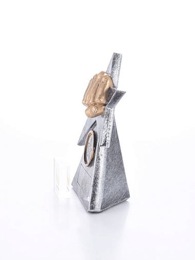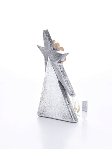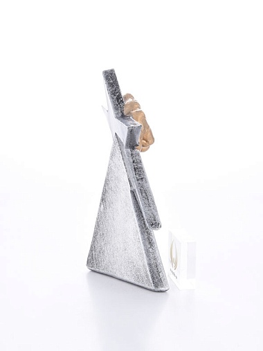 Литая фигура из металлизированного пластика на металлическом каркасе. Транспортировочная коробка в комплекте.