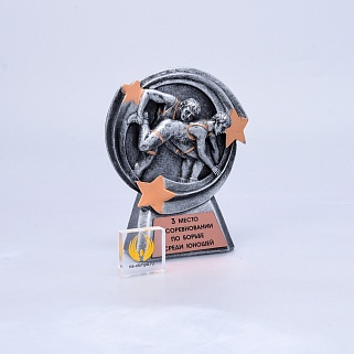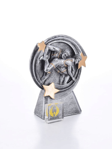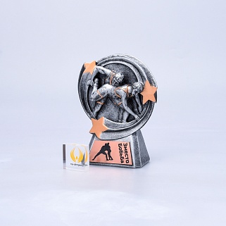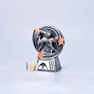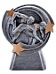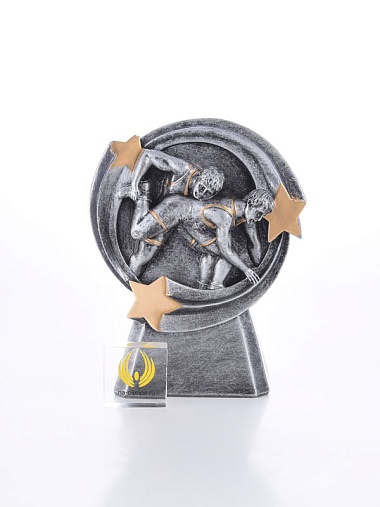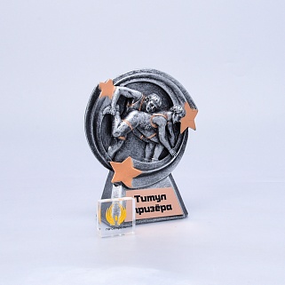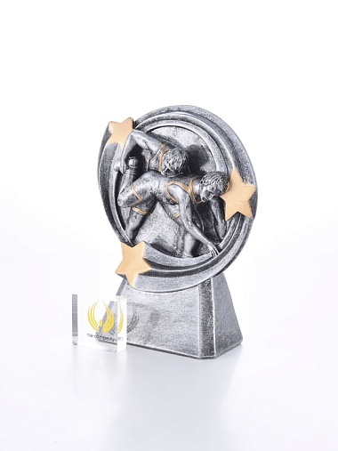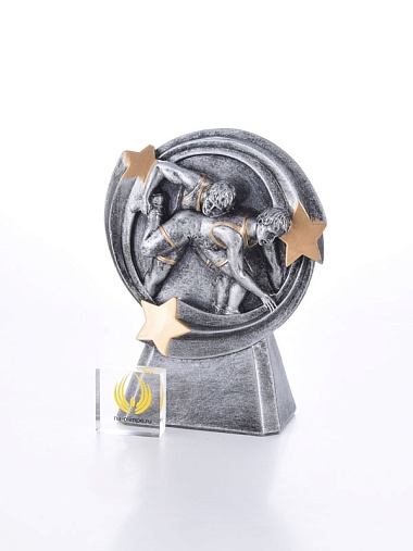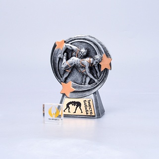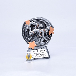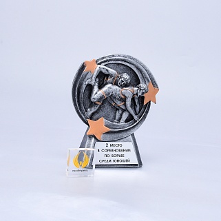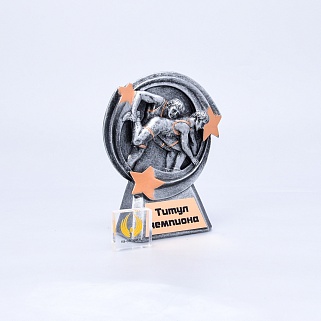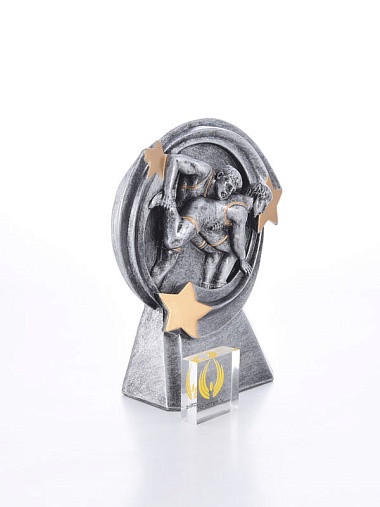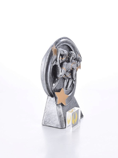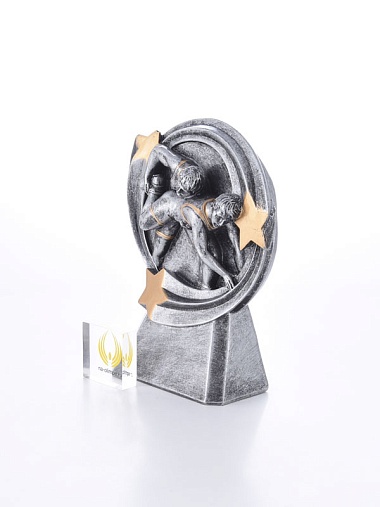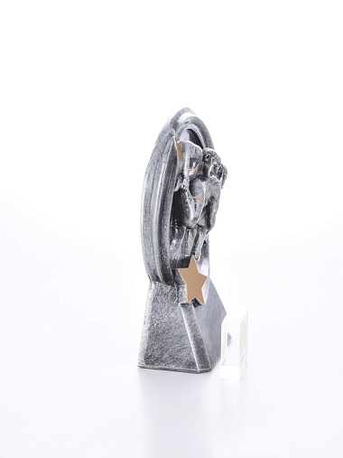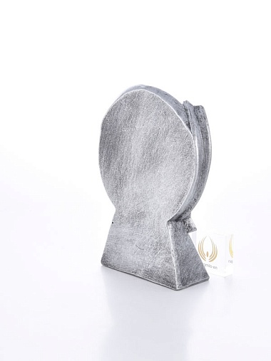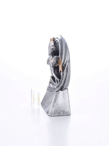 Литая фигура из металлизированного пластика на металлическом каркасе. Транспортировочная коробка в комплекте.