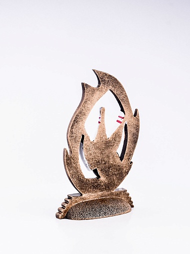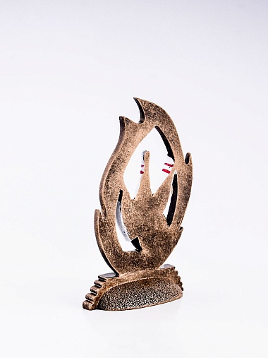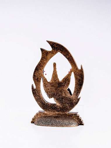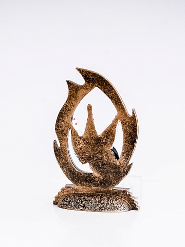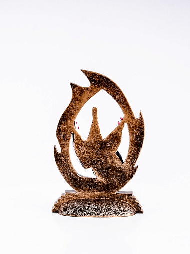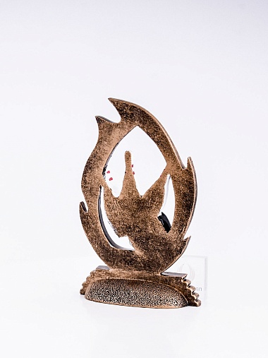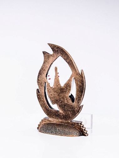 Литая фигура из металлизированного пластика на металлическом каркасе.