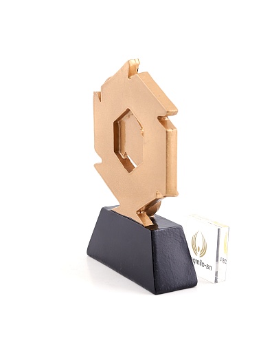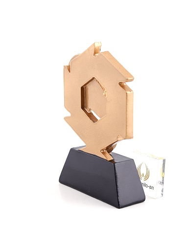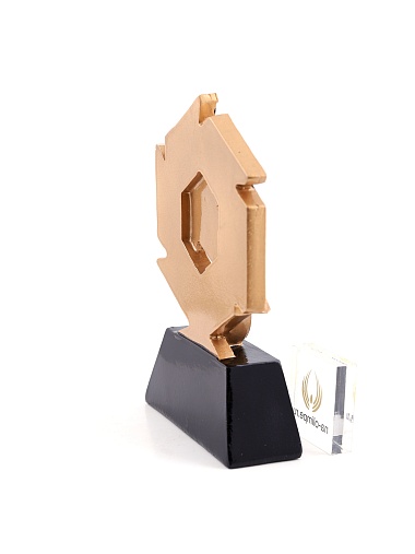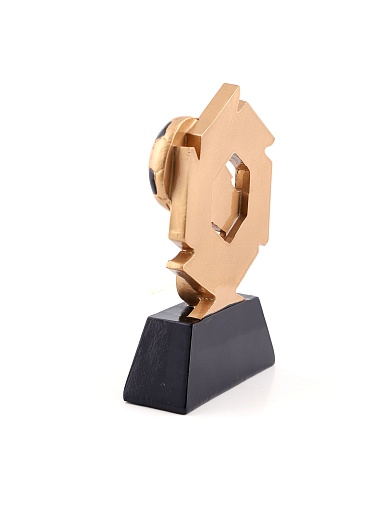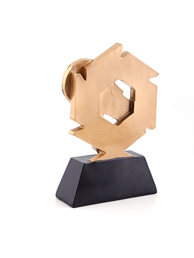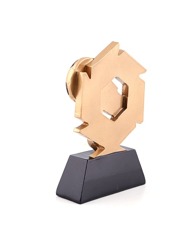 Литая фигура из металлизированного пластика на металлическом каркасе. Транспортировочная коробка в комплекте. Вес награды без упаковки 285гр.
