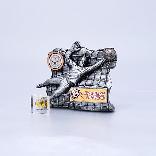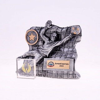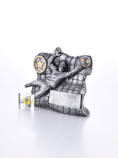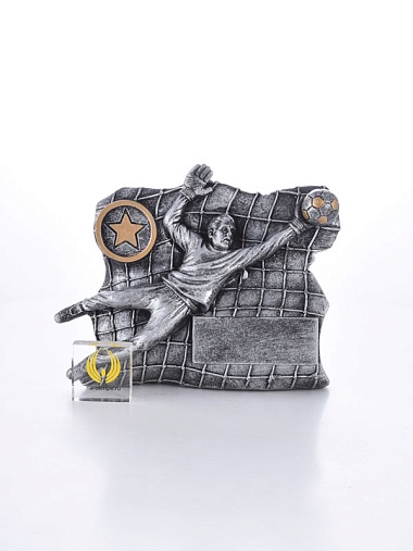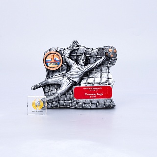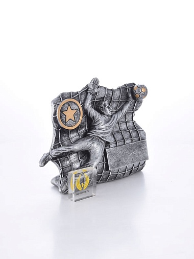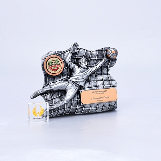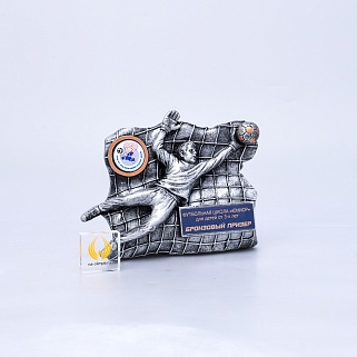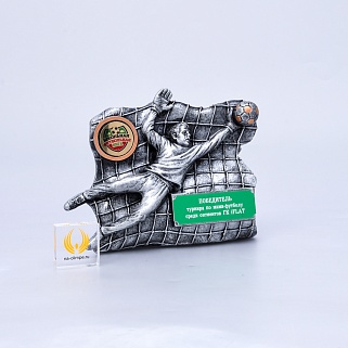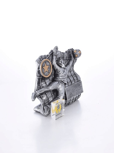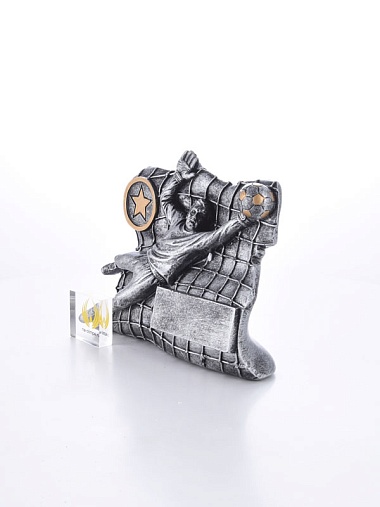 Литая фигура из металлизированного пластика на металлическом каркасе. Транспортировочная коробка в комплекте.