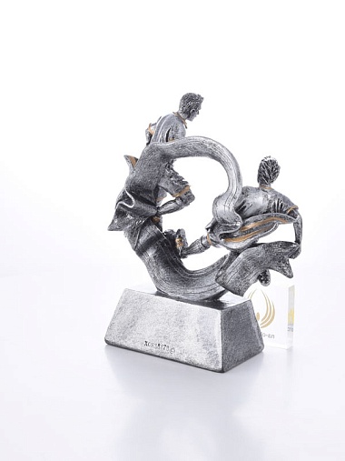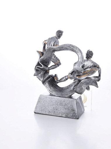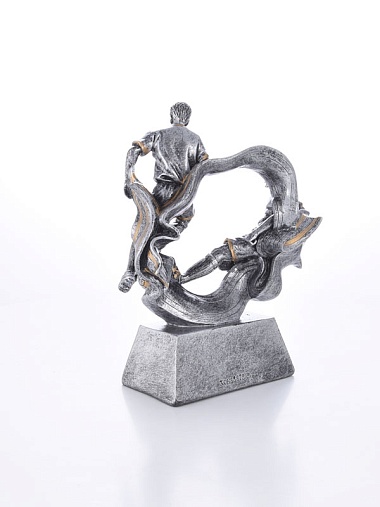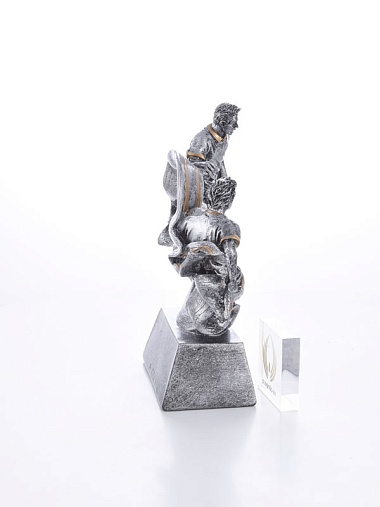 Литая фигура из металлизированного пластика на металлическом каркасе. Транспортировочная коробка в комплекте.