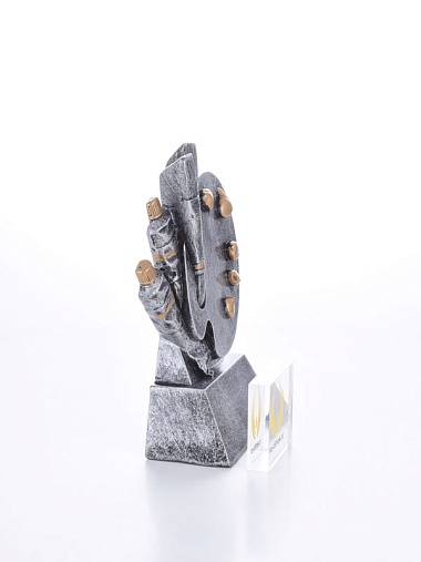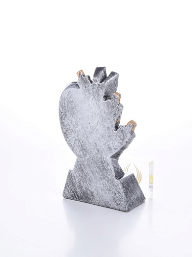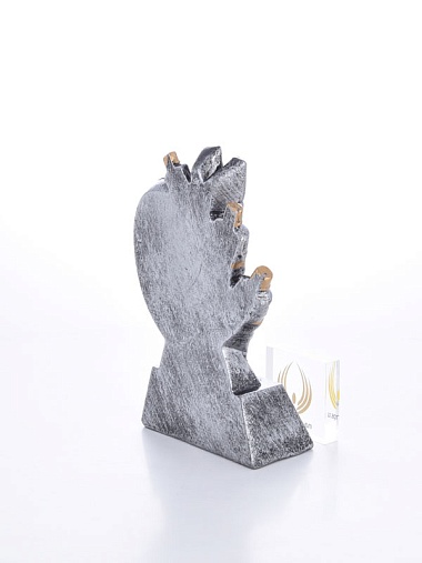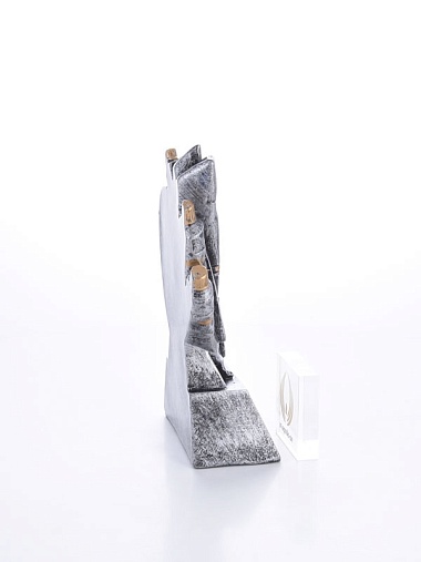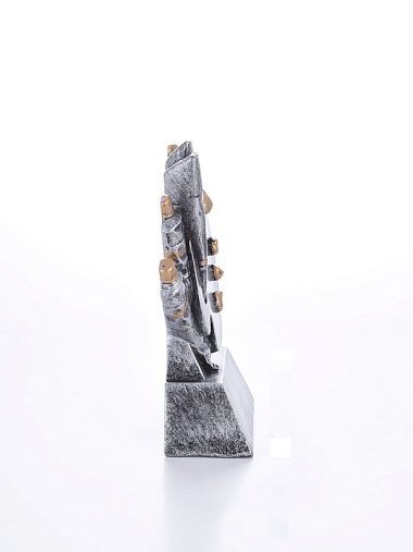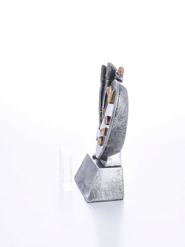 Литая фигура из металлизированного пластика на металлическом каркасе. Транспортировочная коробка в комплекте.