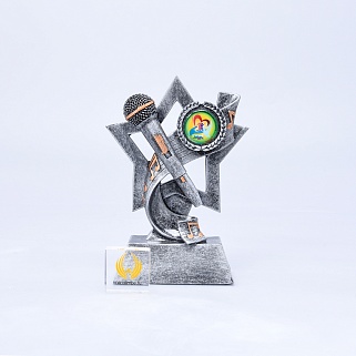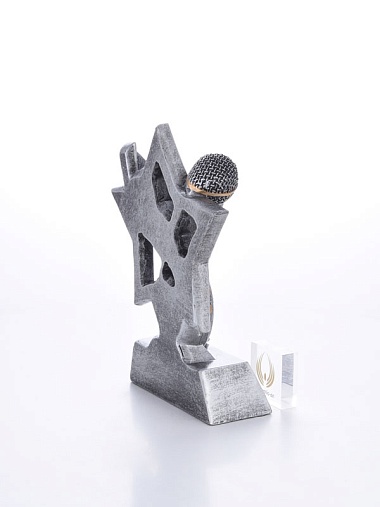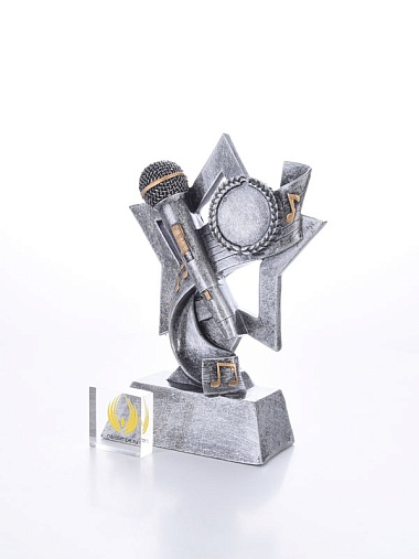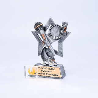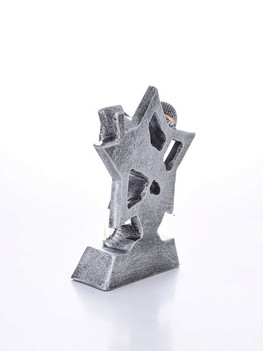 Литая фигура из металлизированного пластика на металлическом каркасе. Транспортировочная коробка в комплекте.