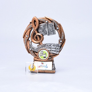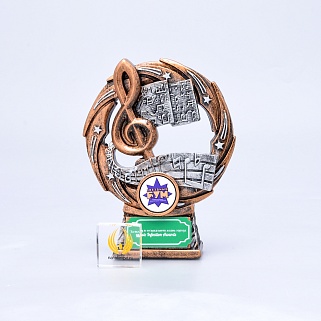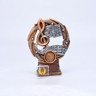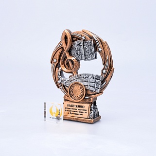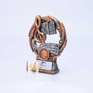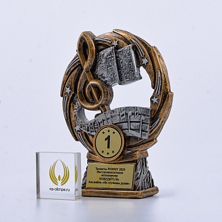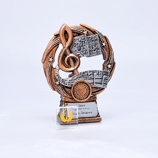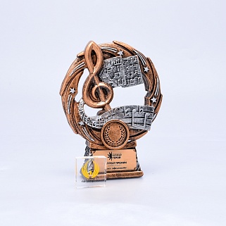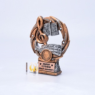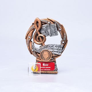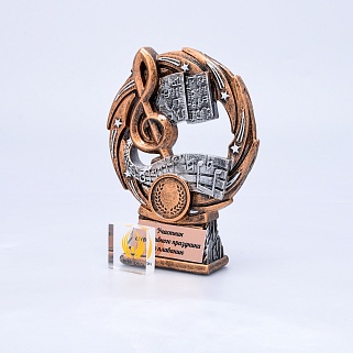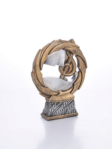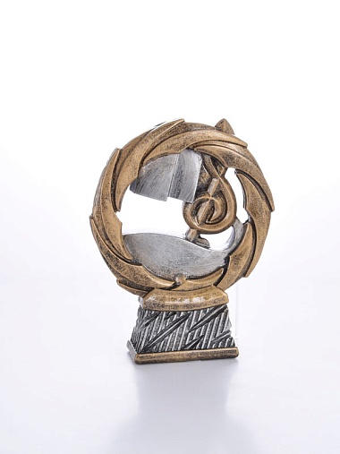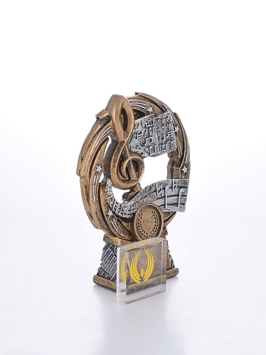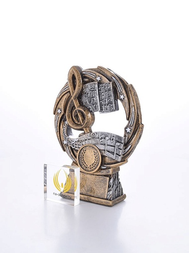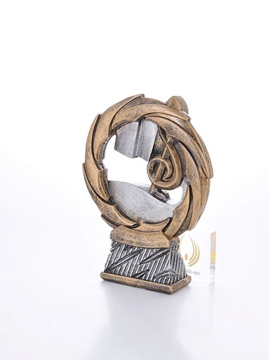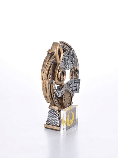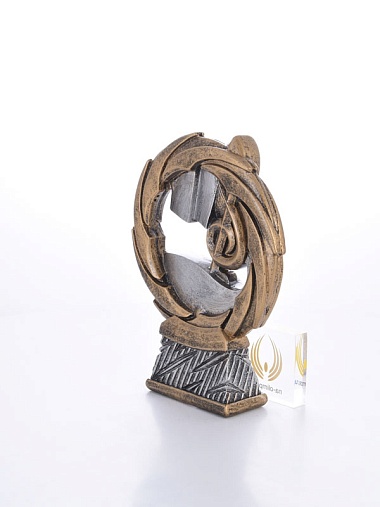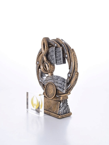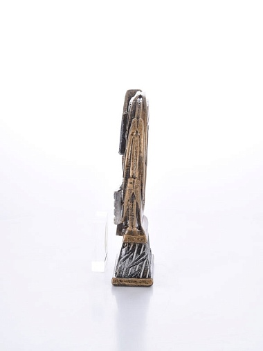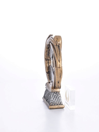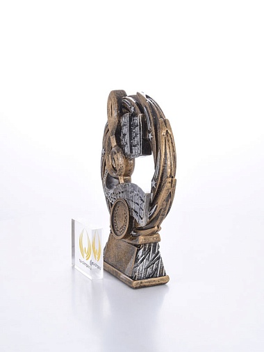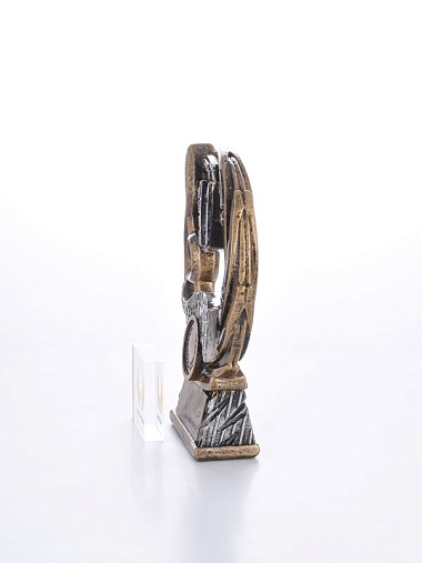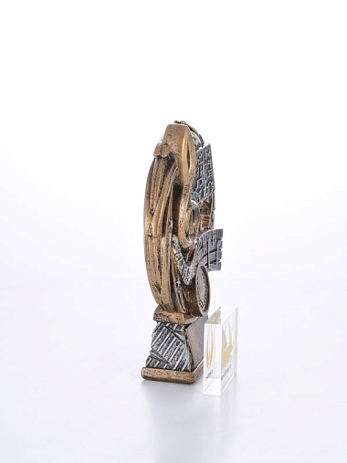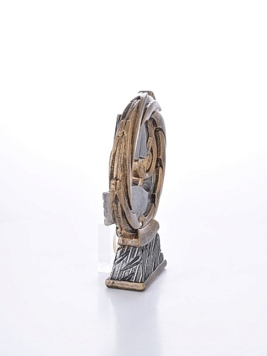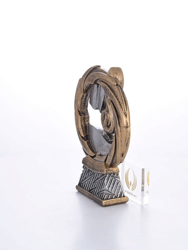 Литая фигура из металлизированного пластика на металлическом каркасе. Транспортировочная коробка в комплекте.