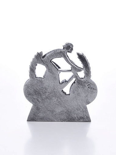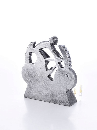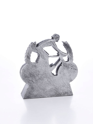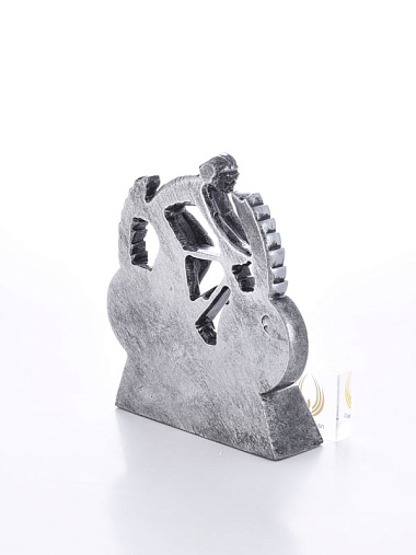 Литая фигура из металлизированного пластика на металлическом каркасе. Транспортировочная коробка в комплекте.