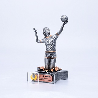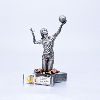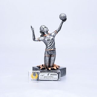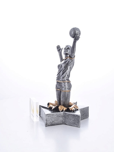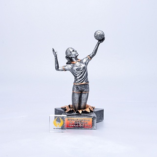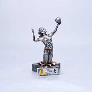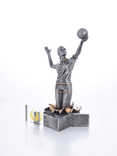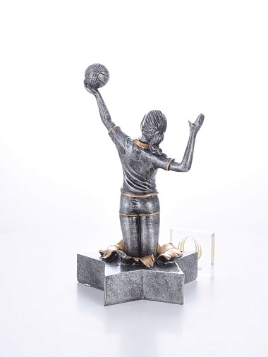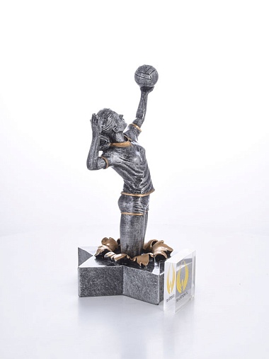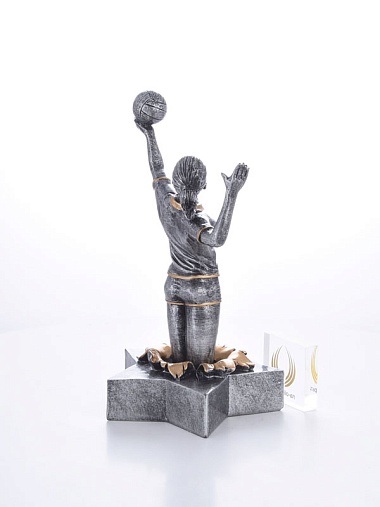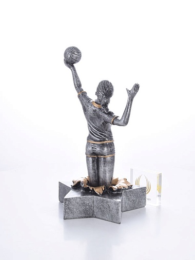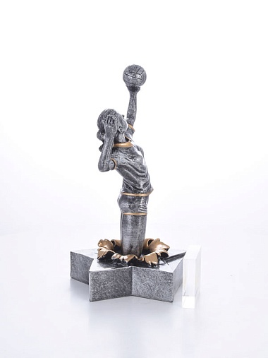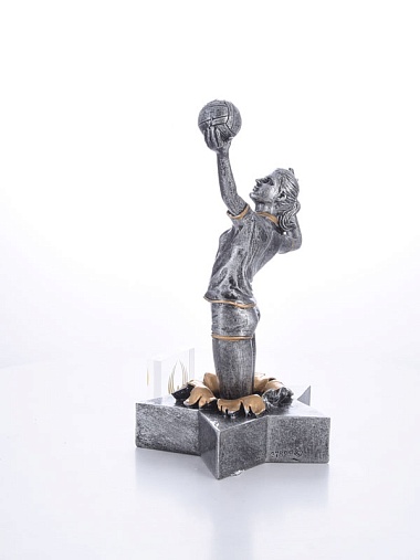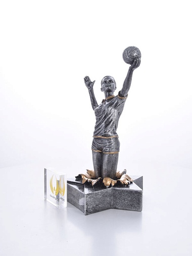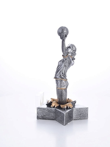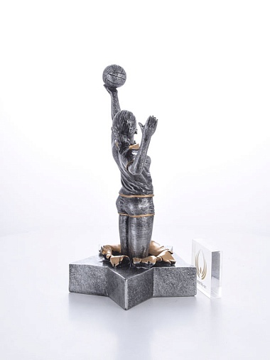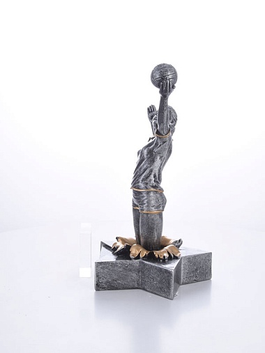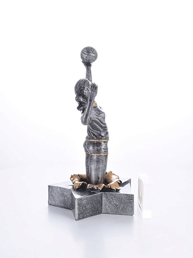 Литая фигура из металлизированного пластика на металлическом каркасе. Транспортировочная коробка в комплекте.