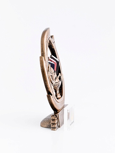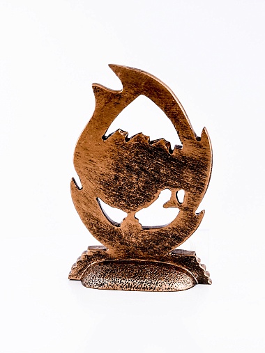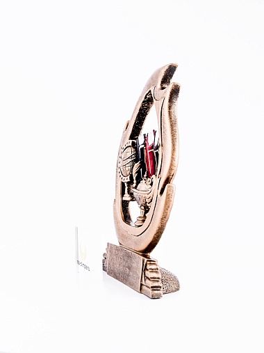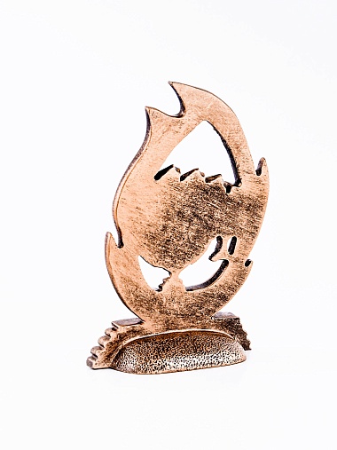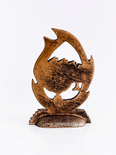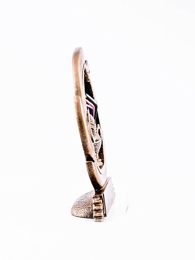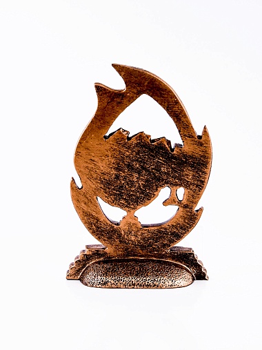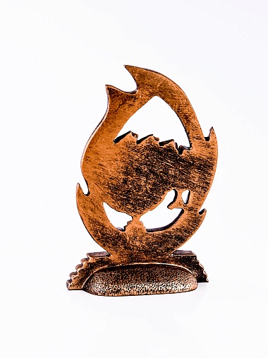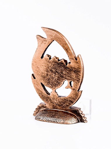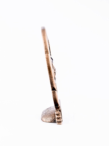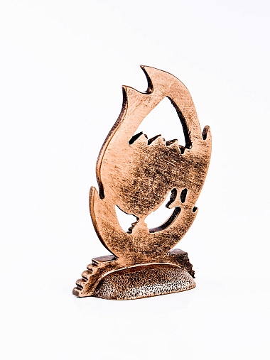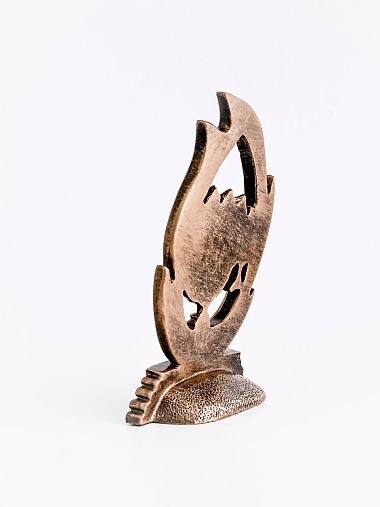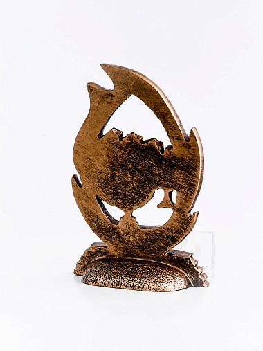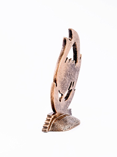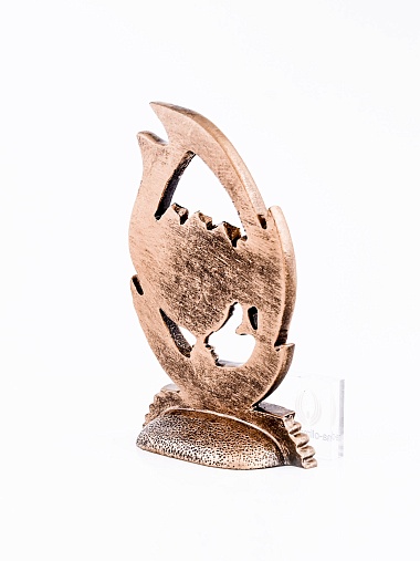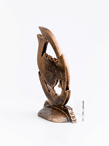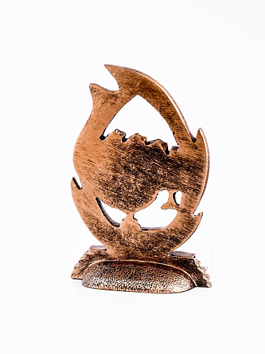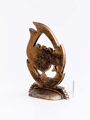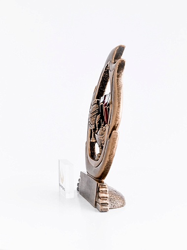 Литая фигура из металлизированного пластика на металлическом каркасе. Транспортировочная коробка в комплекте. Вес фигурки без коробки 250гр.