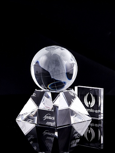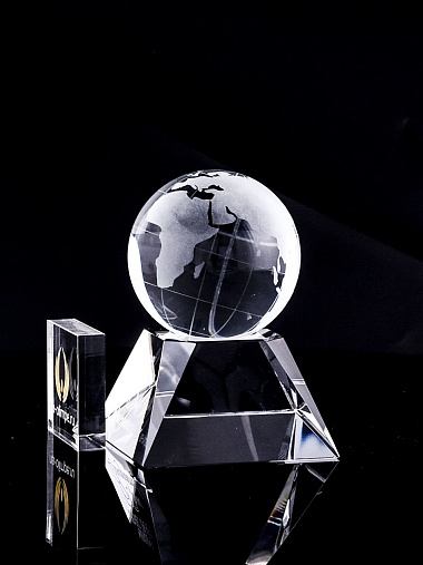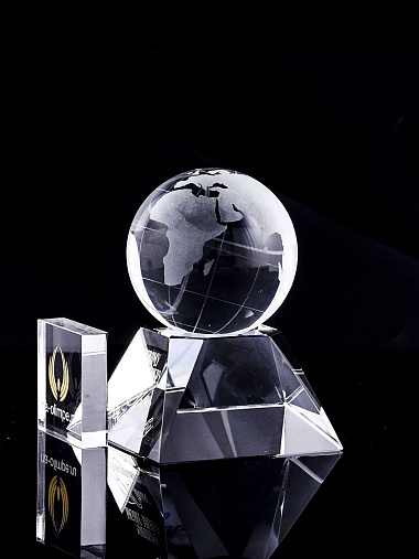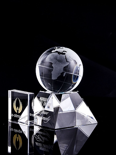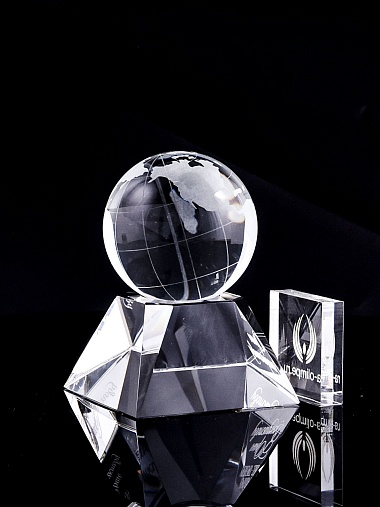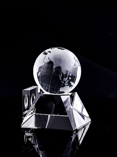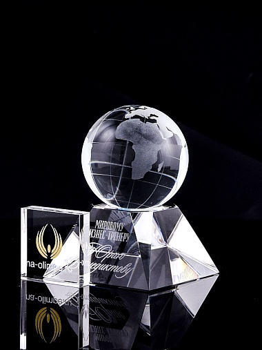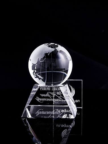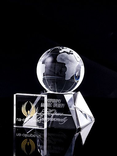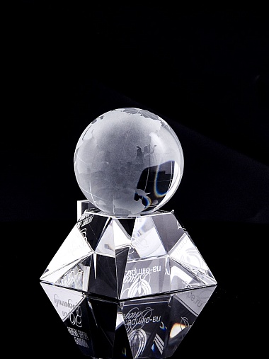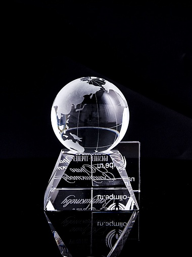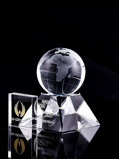 Стеклянная награда с гравировкой. Поставляется в комплекте с подарочным футляром. Вес награды без футляра 588гр. Стоимость указана за нанесение на лицевой и оборотной стороне награды. Возможность нанесения на боковые стороны и стоимость этих работ можно уточнить у менеджеров.