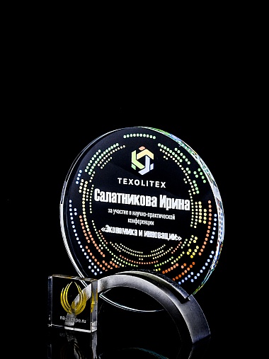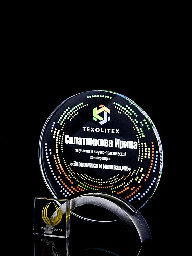 Стеклянная награда C102 с цветным нанесением, высота 15.5 см