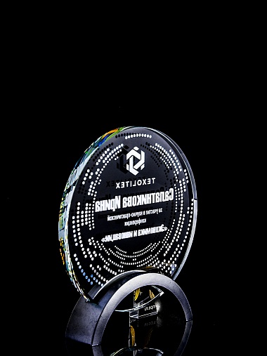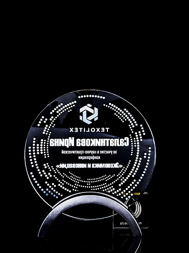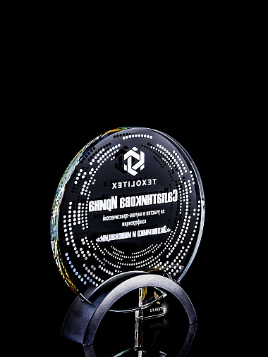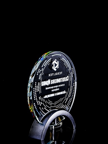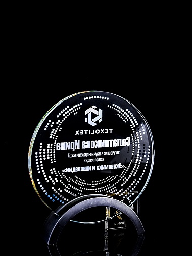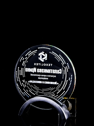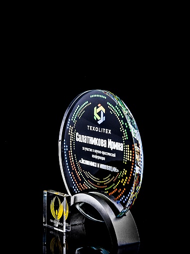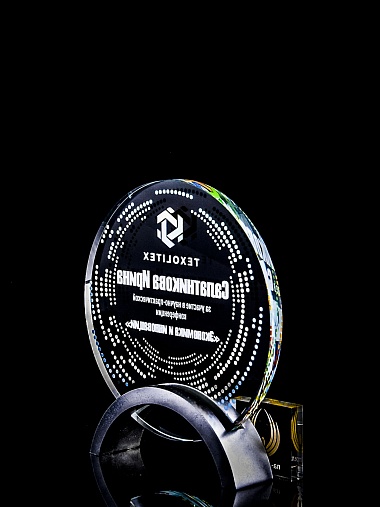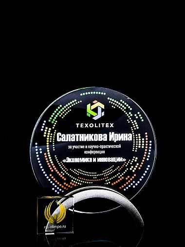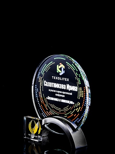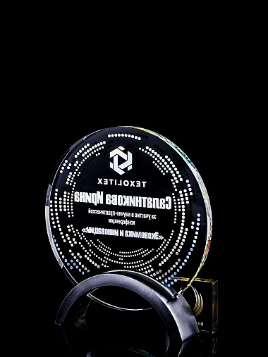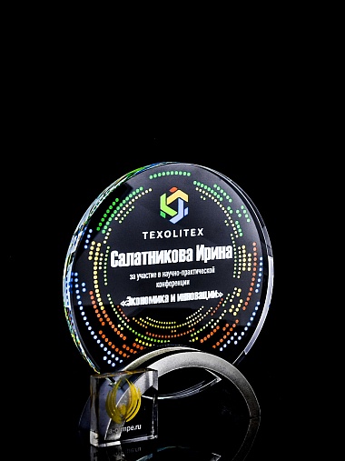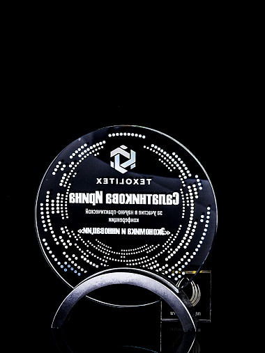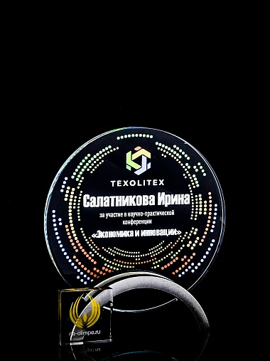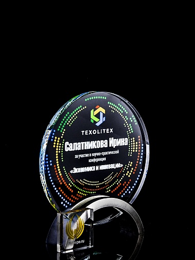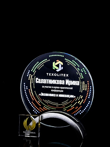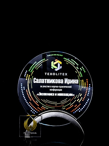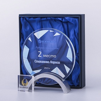 Стеклянная награда с полноцветным нанесением на металлической подставке. Толщина стекла 10 мм. Поставляется в комплекте с подарочным футляром. Вес награды без футляра 465гр. Стоимость указана за нанесение на одной стороне. Возможность нанесения на дополнительной стороне и стоимость этих работ можно уточнить у менеджеров. Стоимость указана за нанесение на одной стороне, печать выполняется на задней стенке награды.