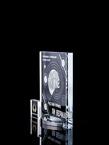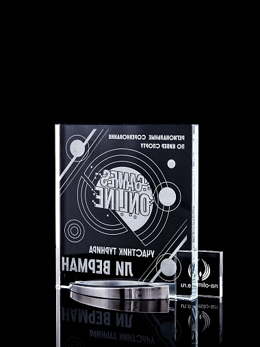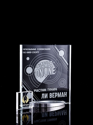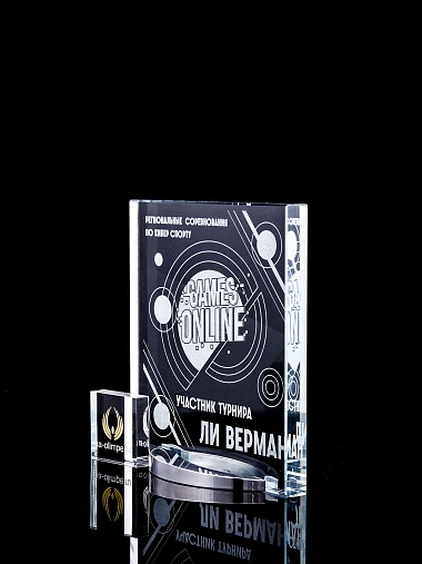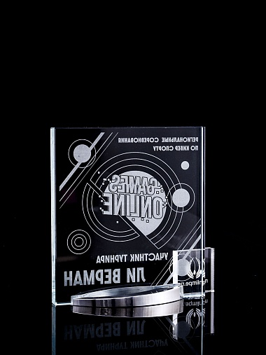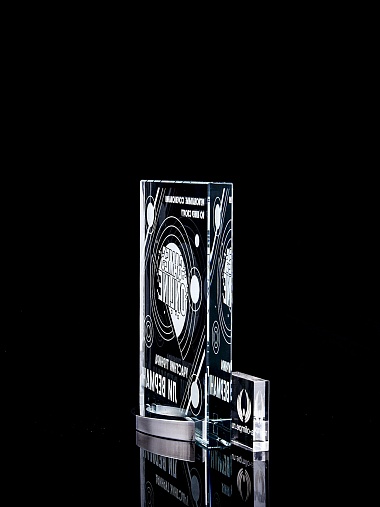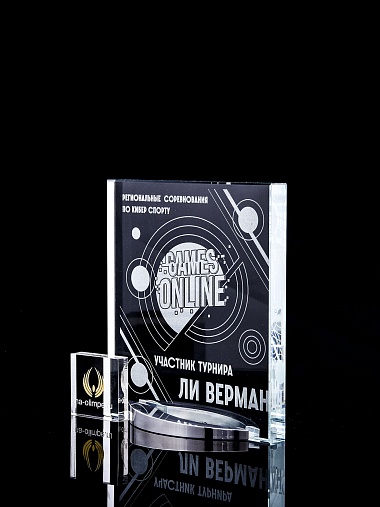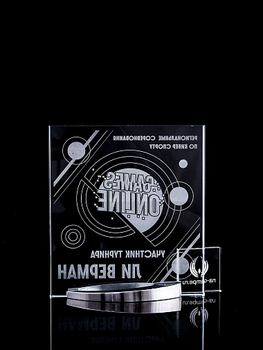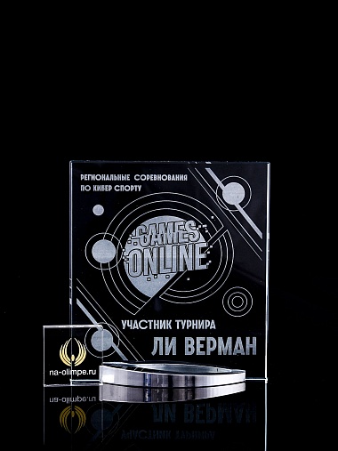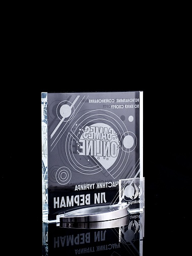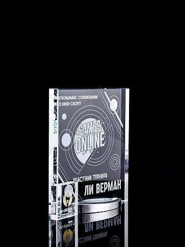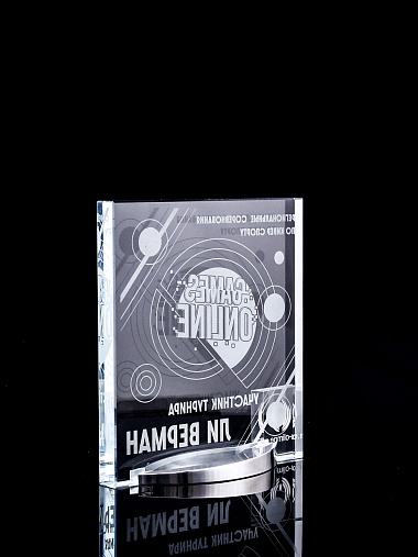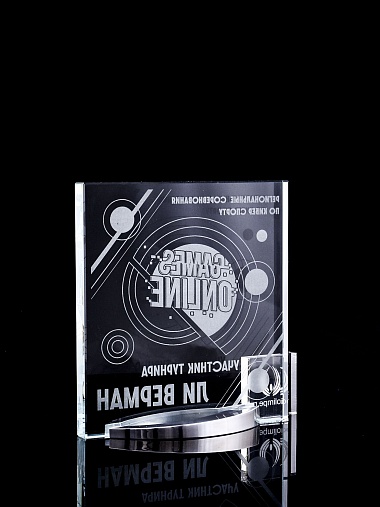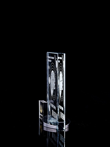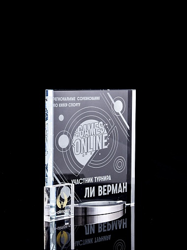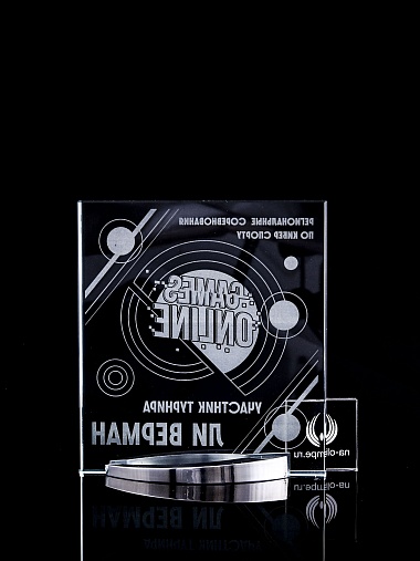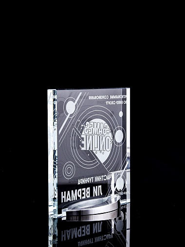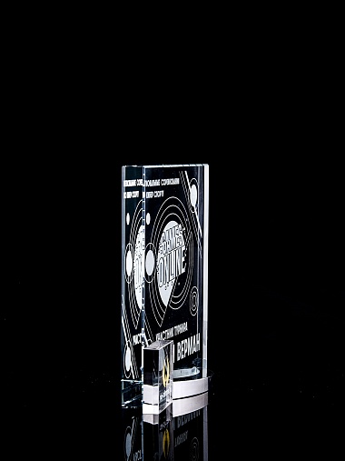 Стеклянная награда с гравировкой. Толщина стекла 15 мм. Поставляется в комплекте с подарочным футляром. Вес награды без футляра 838гр. Стоимость указана за нанесение на одной стороне, гравировка выполняется на задней стенке награды. Возможность нанесения на дополнительной стороне и стоимость этих работ можно уточнить у менеджеров.