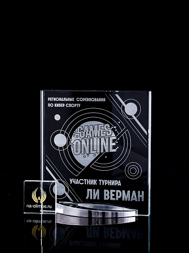 Стеклянная награда C103 с гравировкой, высота 15 см
