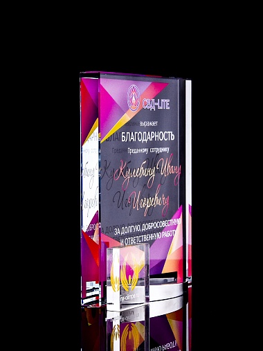Стеклянная награда C103 с цветным нанесением, высота 15 см