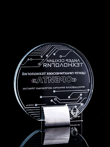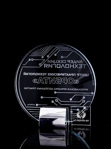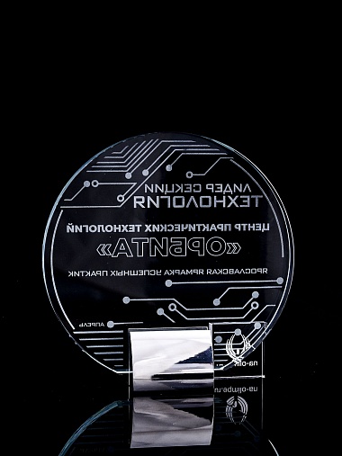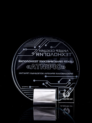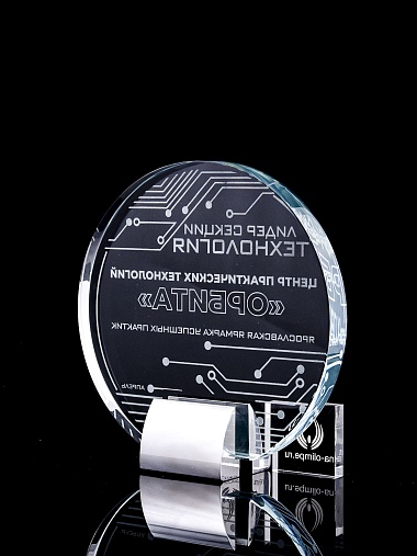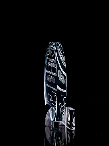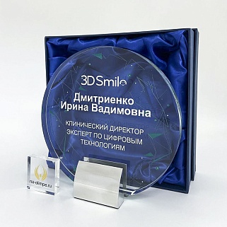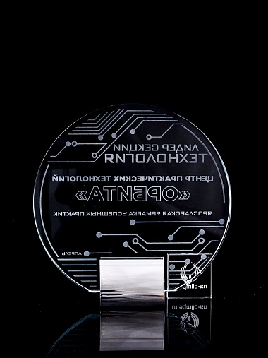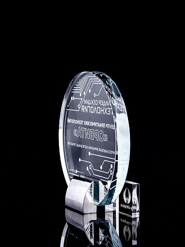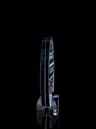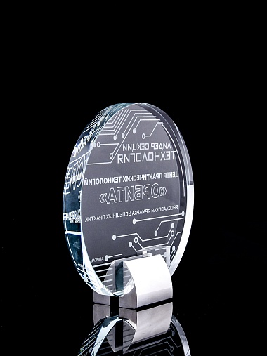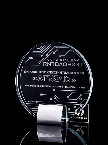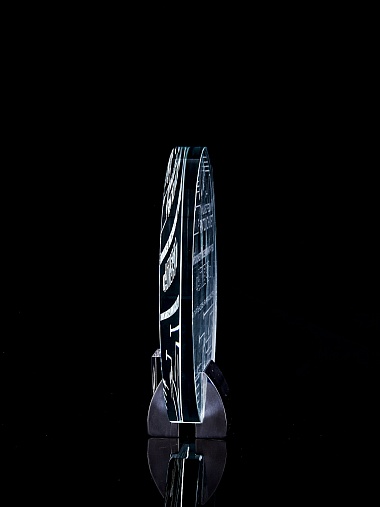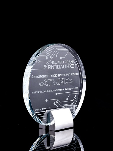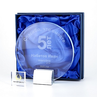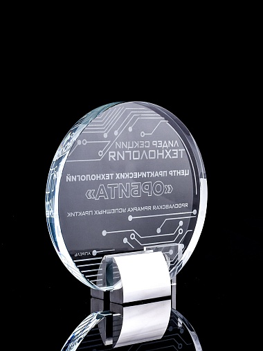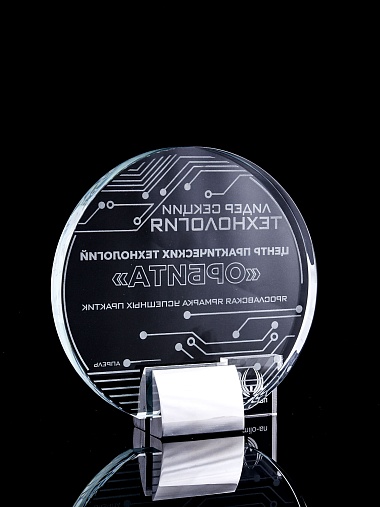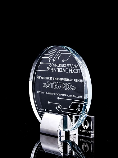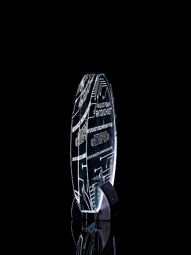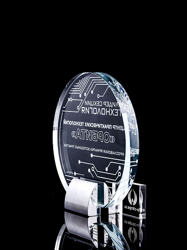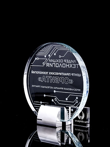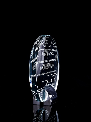Стеклянная награда с гравировкой. Толщина стекла 19 мм. Поставляется в комплекте с подарочным футляром. Вес награды без футляра 1170гр. Стоимость указана за нанесение на одной стороне, гравировка выполняется на задней стенке награды. Возможность нанесения на дополнительной стороне и стоимость этих работ можно уточнить у менеджеров.