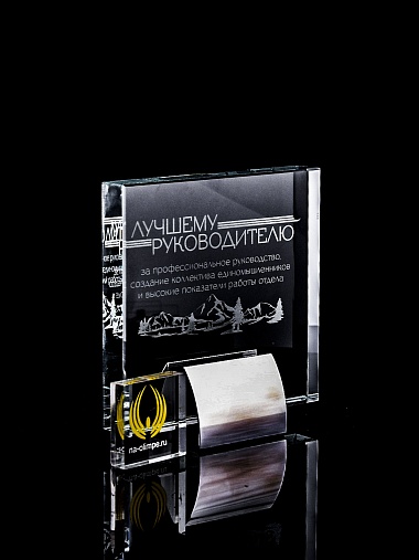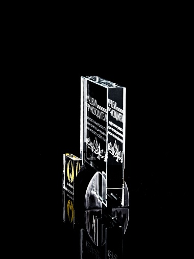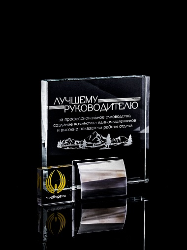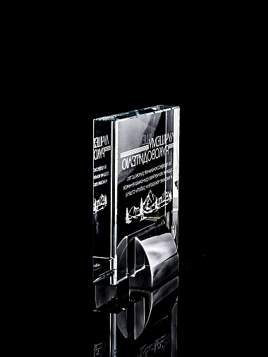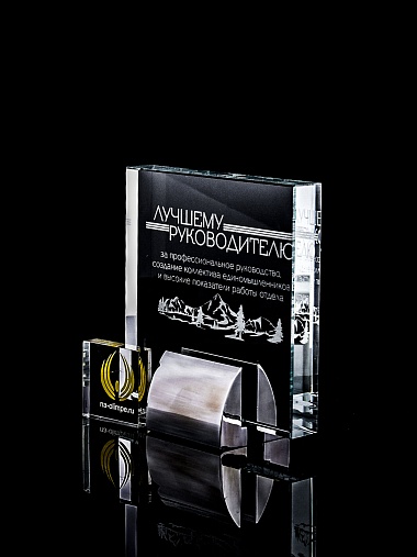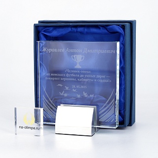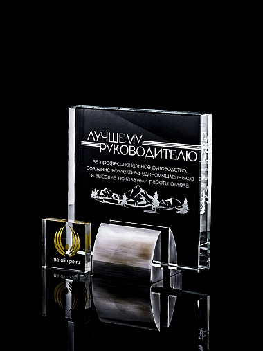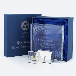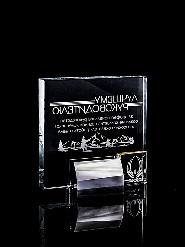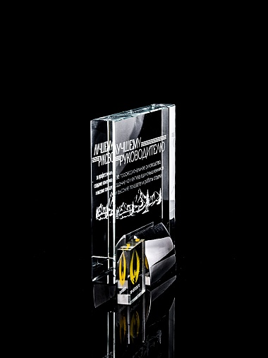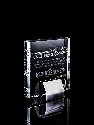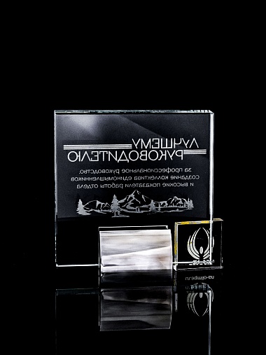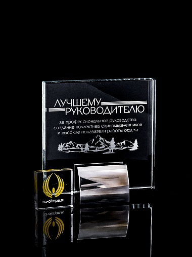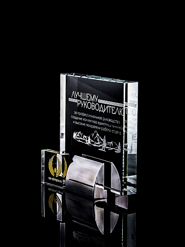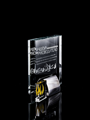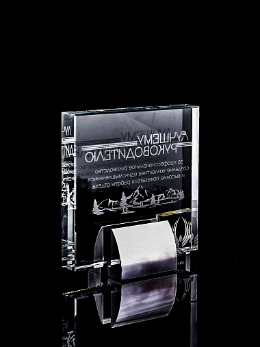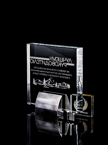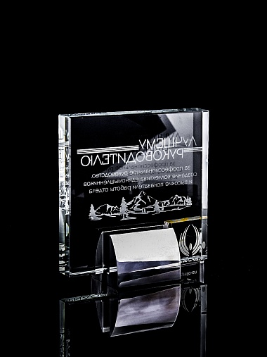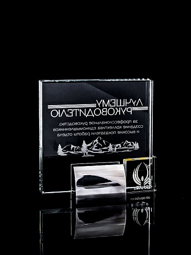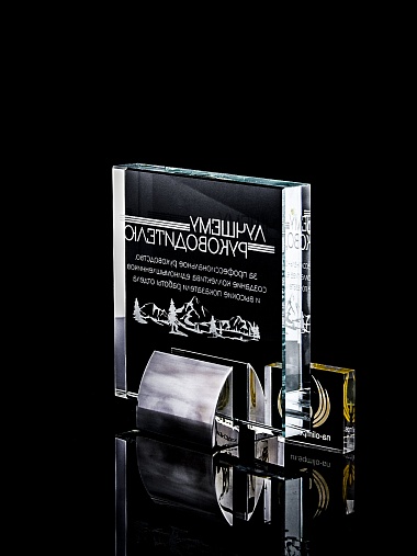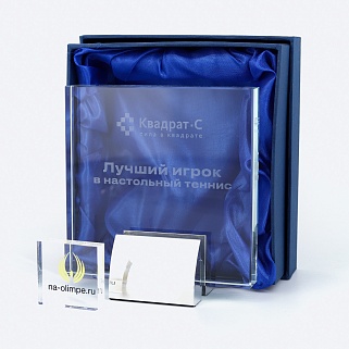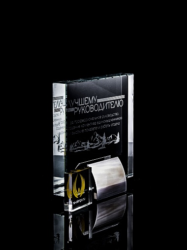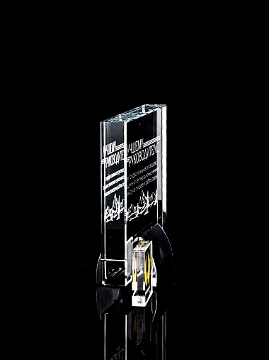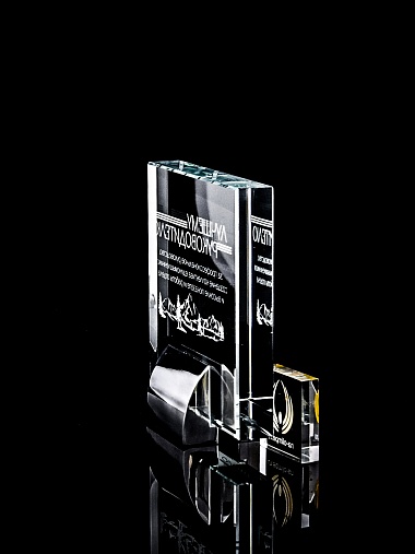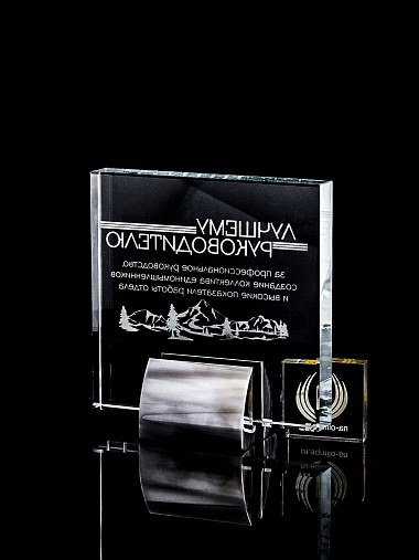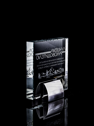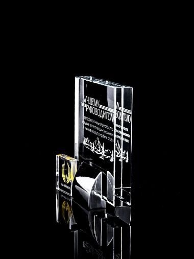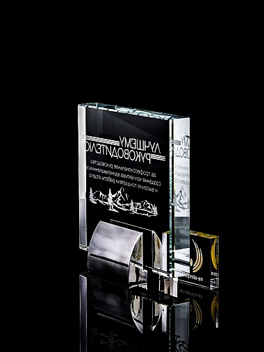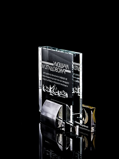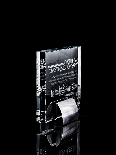 Стеклянная награда с гравировкой. Толщина стекла 19 мм. Поставляется в комплекте с подарочным футляром. Вес награды без футляра 1500гр. Стоимость указана за нанесение на одной стороне, гравировка выполняется на задней стенке награды. Возможность нанесения на дополнительной стороне и стоимость этих работ можно уточнить у менеджеров.