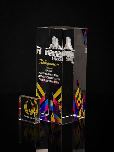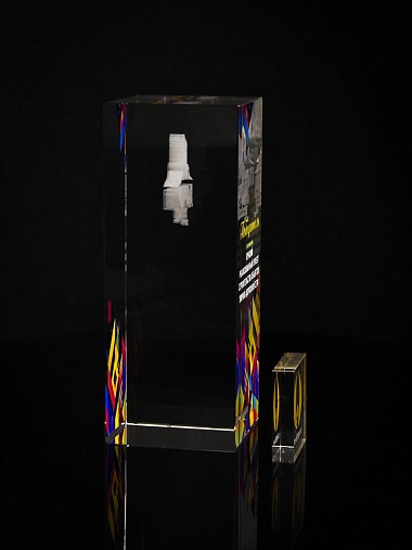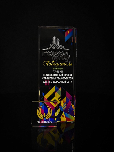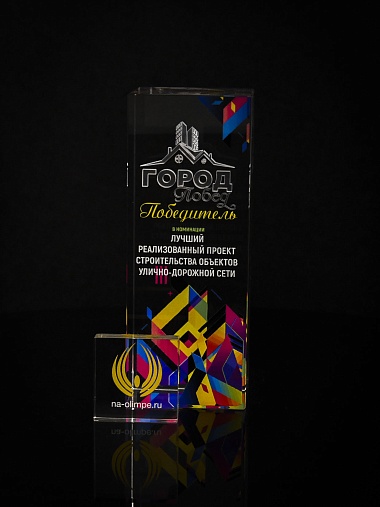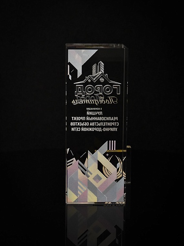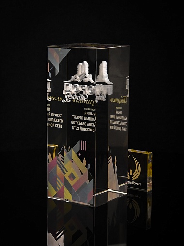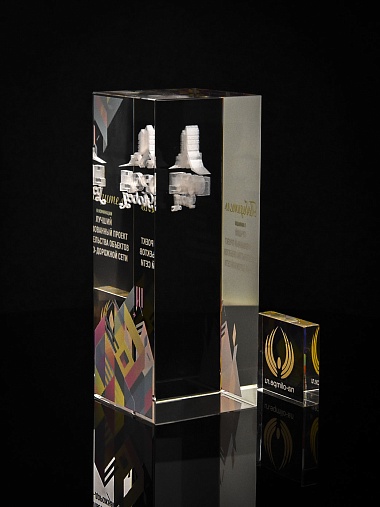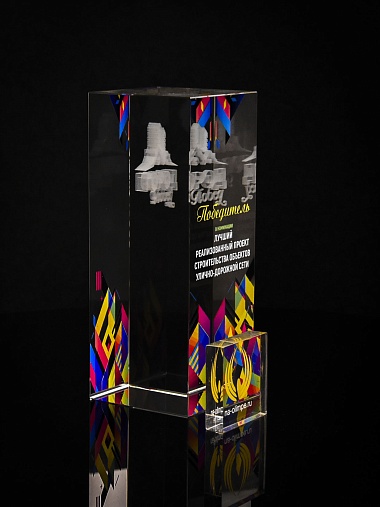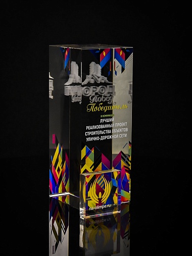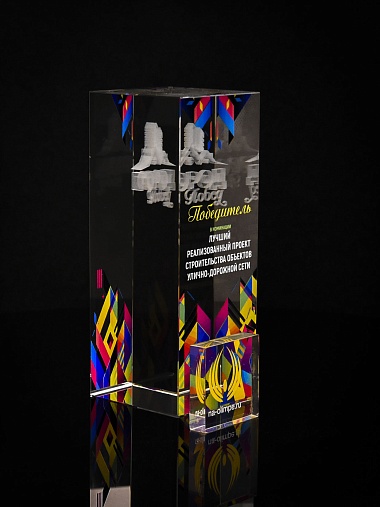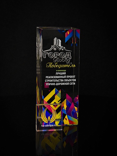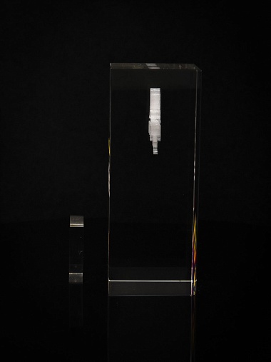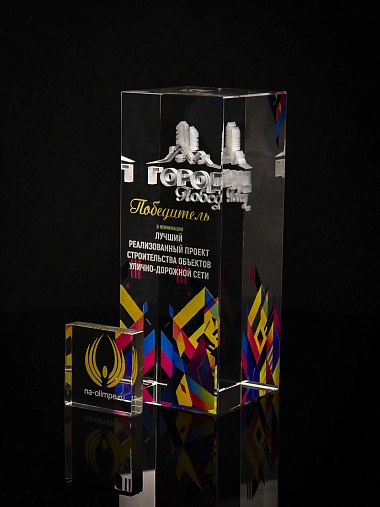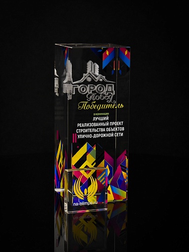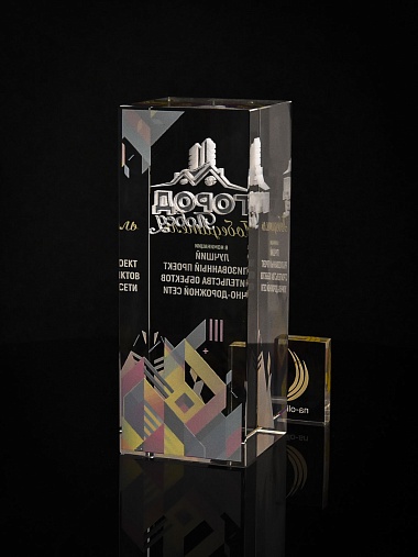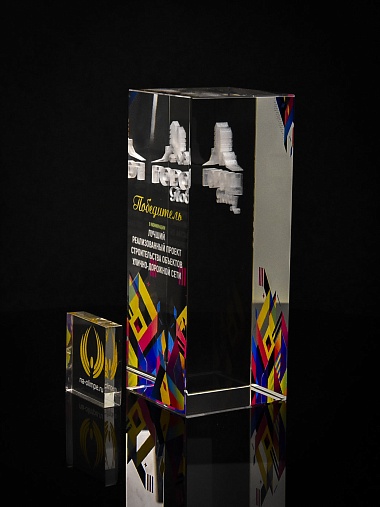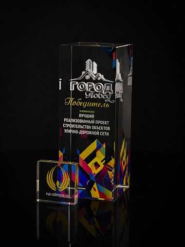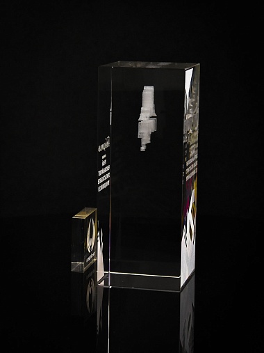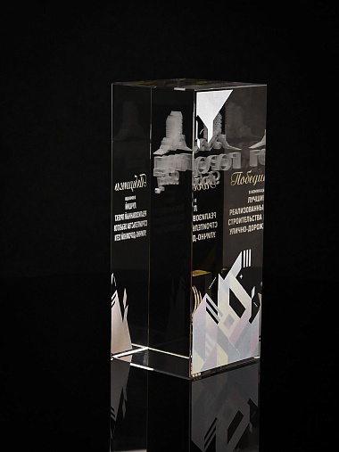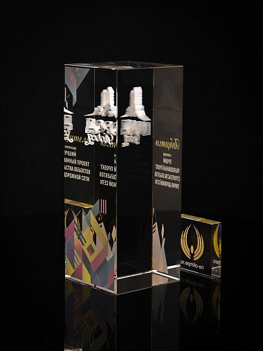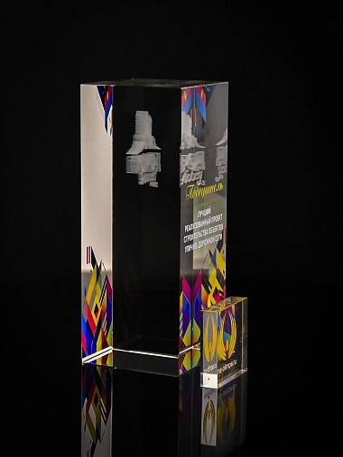 Награда из оптического стекла с 3D гравировкой и цветным нанесением. Поставляется в комплекте с подарочным футляром. Вес награды без футляра 1046гр. Стоимость указана за нанесение на лицевой и оборотной стороне награды. Возможность нанесения на боковые стороны и стоимость этих работ можно уточнить у менеджеров.