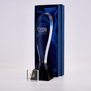 Награда из оптического стекла с гравировкой. Поставляется в комплекте с подарочным футляром. Вес награды без футляра 760гр. Стоимость указана за нанесение на одной стороне, гравировка выполняется на передней стенке награды.