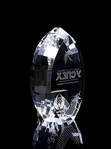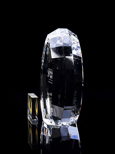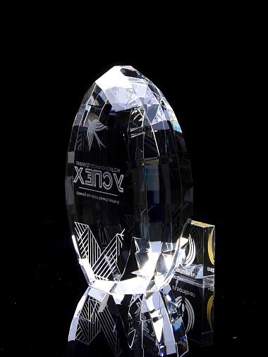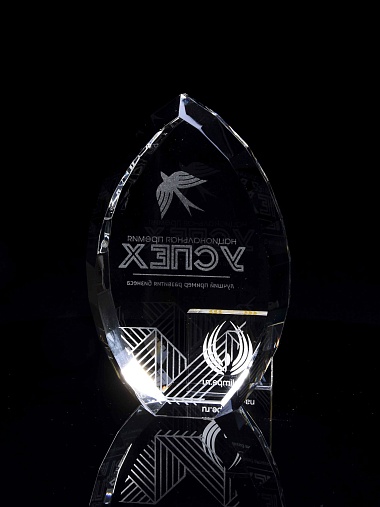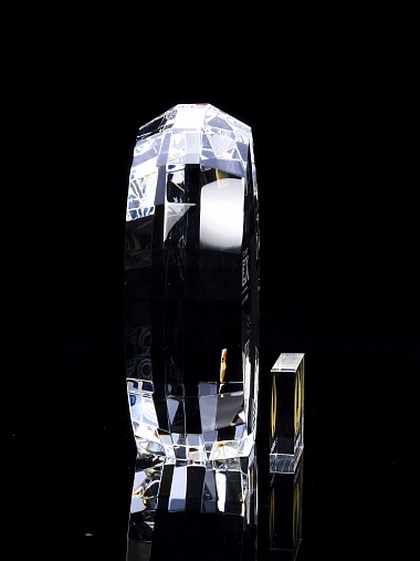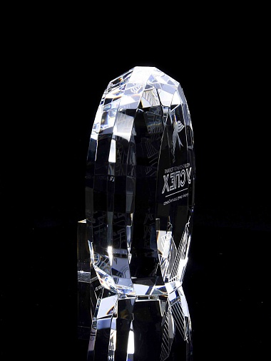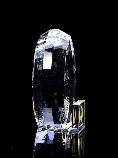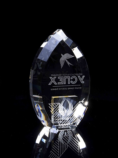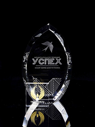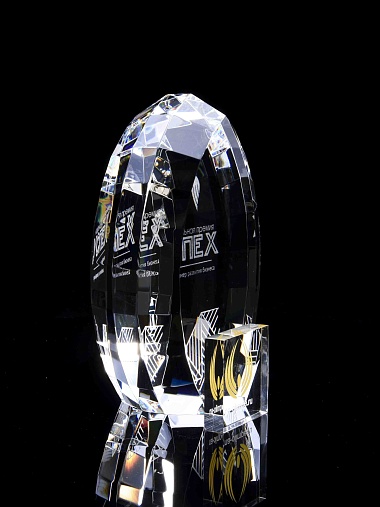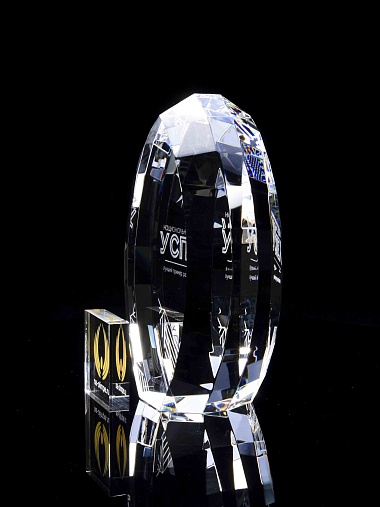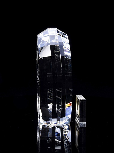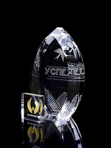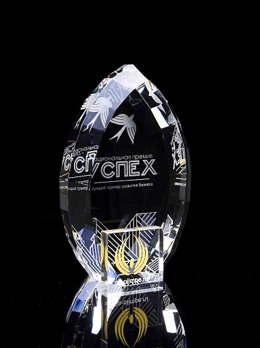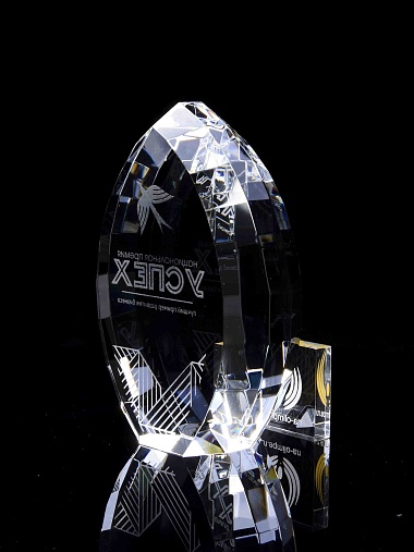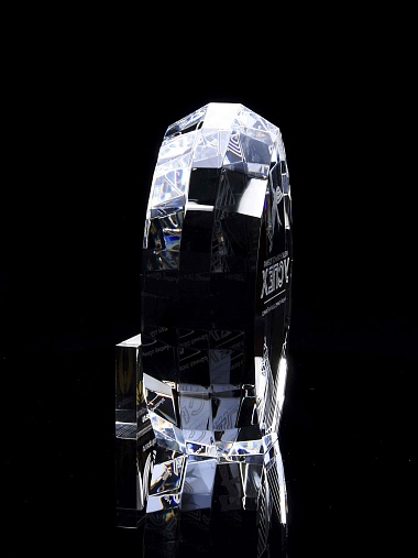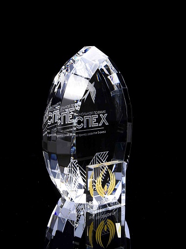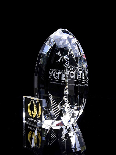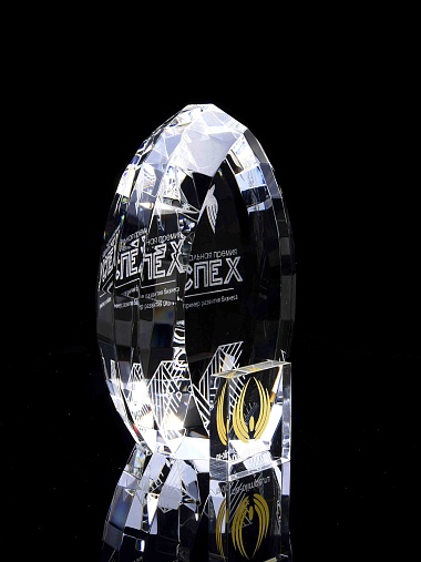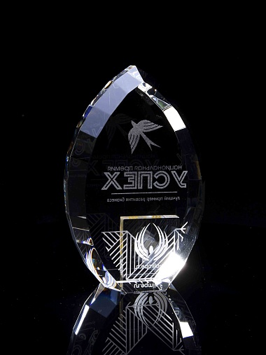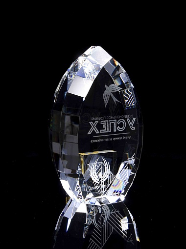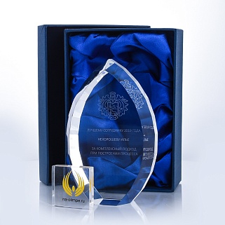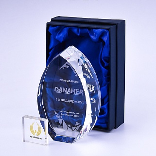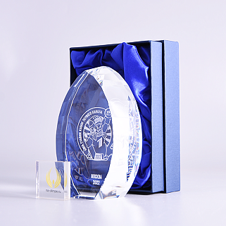 Стеклянная награда с гравировкой. Толщина стекла 45 мм. Поставляется в комплекте с подарочным футляром. Вес награды без футляра 1020гр. Стоимость указана за нанесение на одной стороне, гравировка выполняется на задней стенке награды.