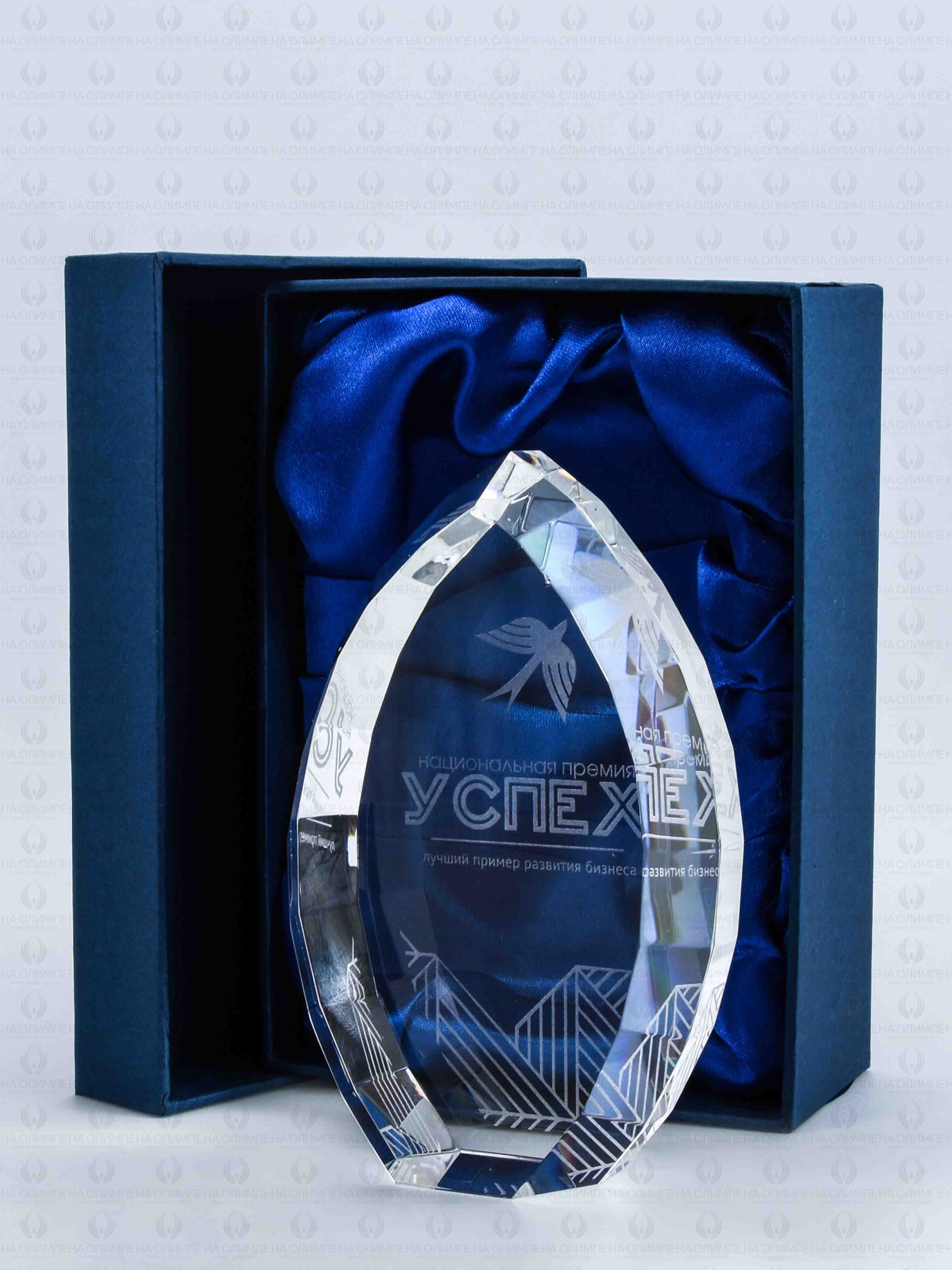 Стеклянная награда C2-140 с гравировкой, высота 14 см