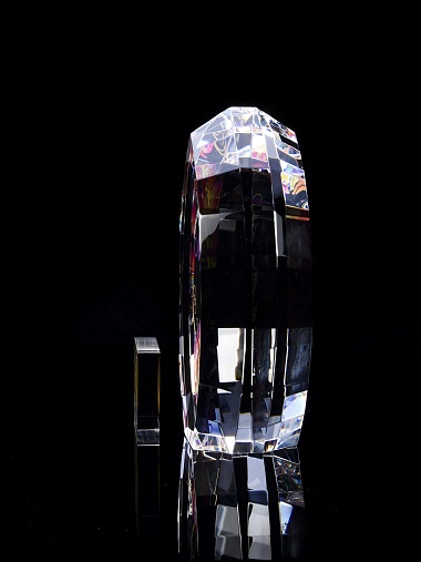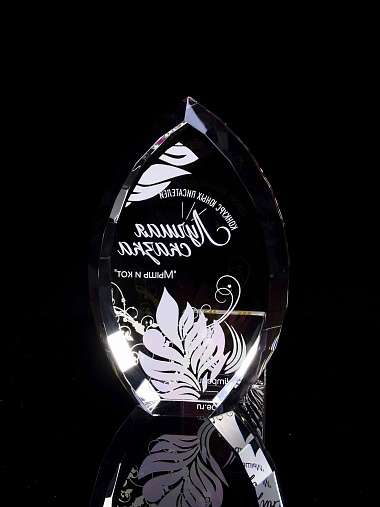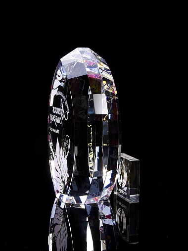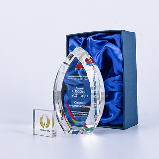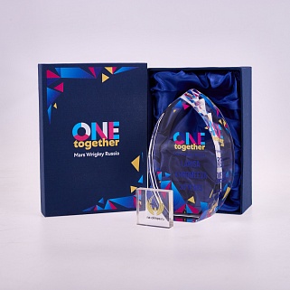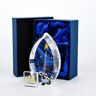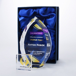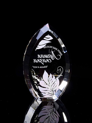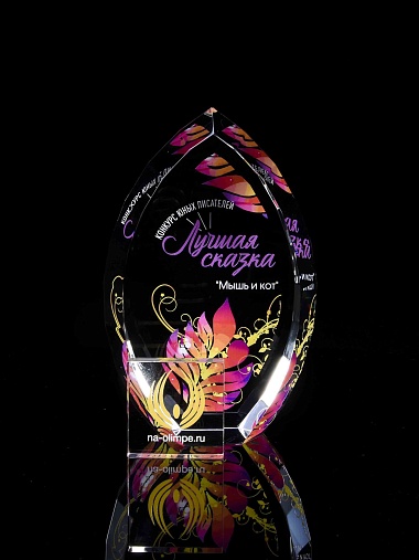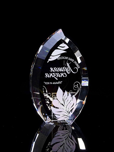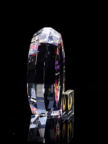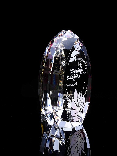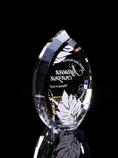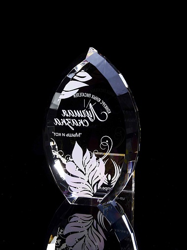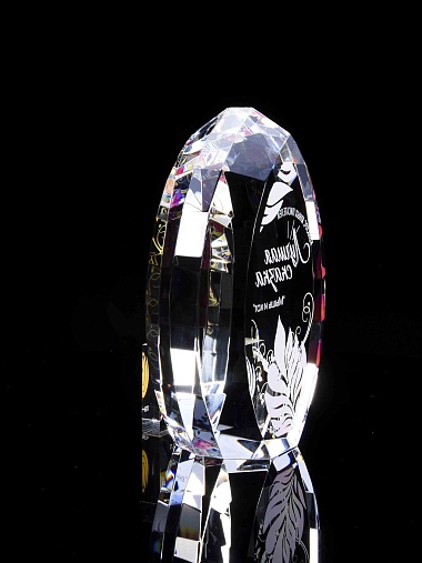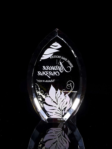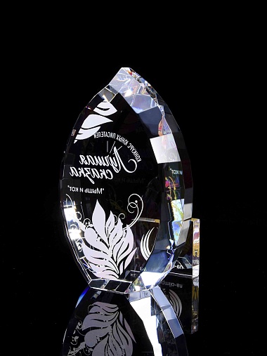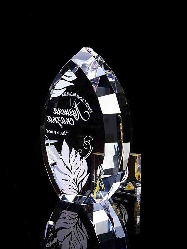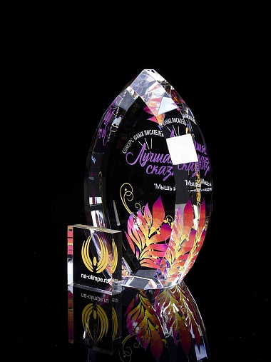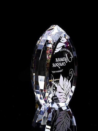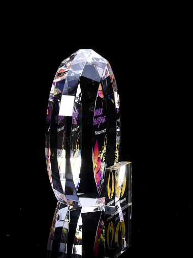 Стеклянная награда с полноцветной печатью. Толщина стекла 45 мм. Поставляется в комплекте с подарочным футляром. Вес награды без футляра 1020гр.Стоимость указана за нанесение на одной стороне, печать выполняется на задней стенке награды.