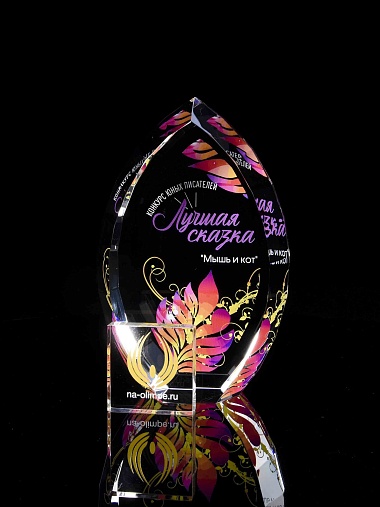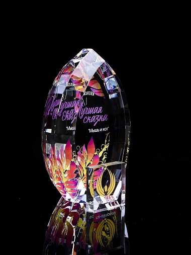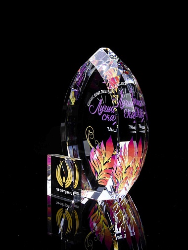 Стеклянная награда C2-140 с цветным нанесением, высота 14 см
