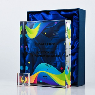 Стеклянная награда C34-200 с цветным нанесением, высота 20 см