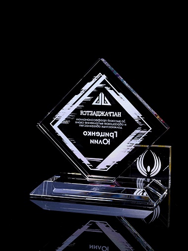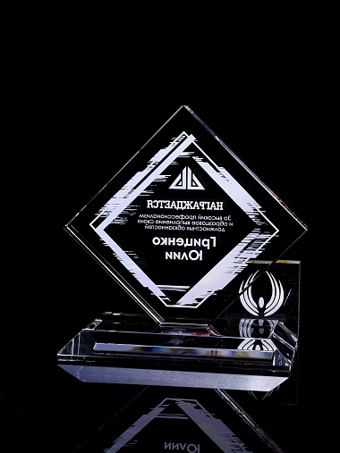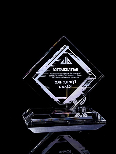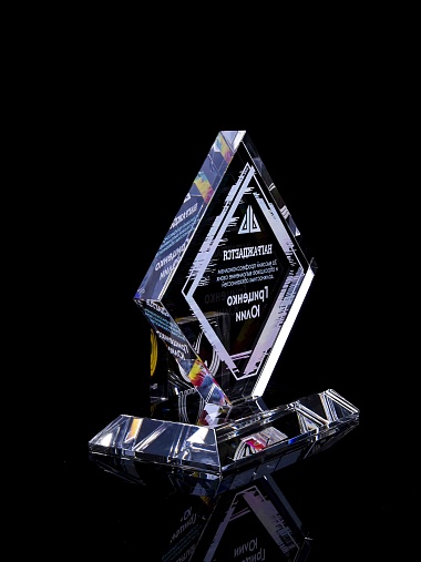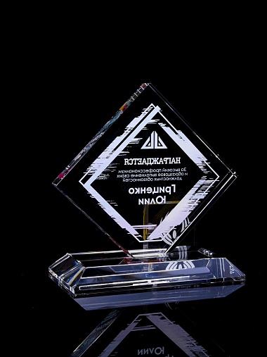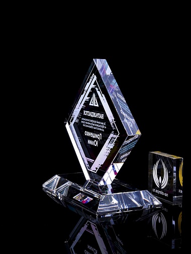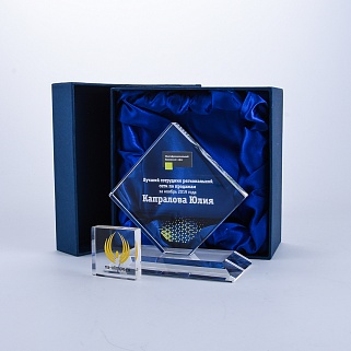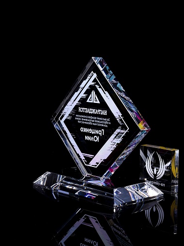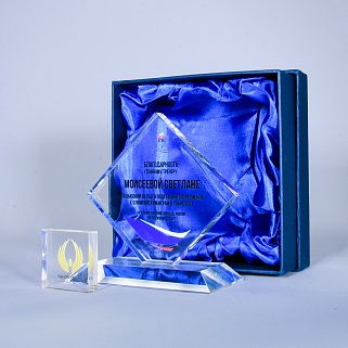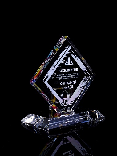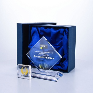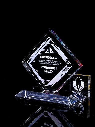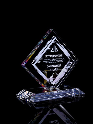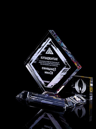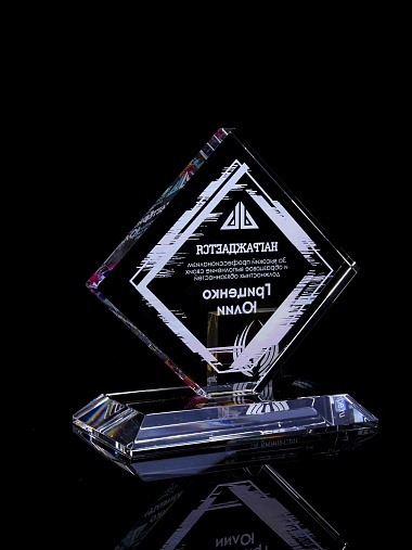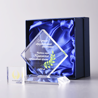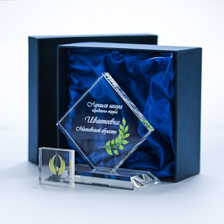 Стеклянная награда с полноцветным нанесением. Толщина стекла 13 мм. Поставляется в комплекте с подарочным футляром. Вес награды без футляра 410гр.Стоимость указана за нанесение на одной стороне, печать выполняется на задней стенке награды.