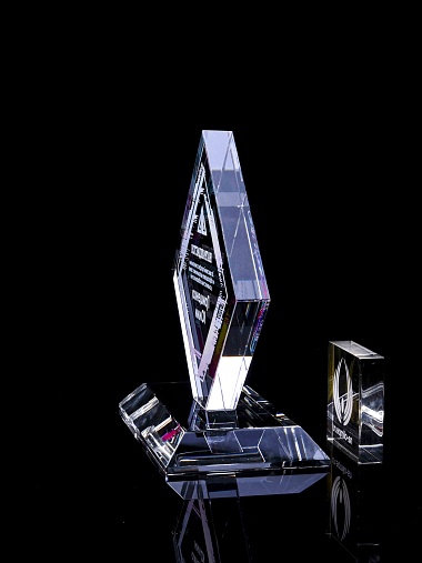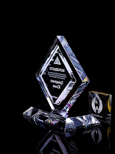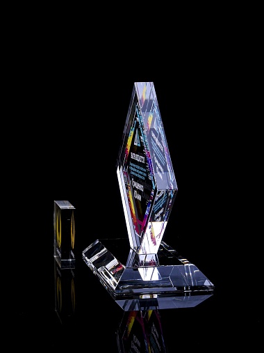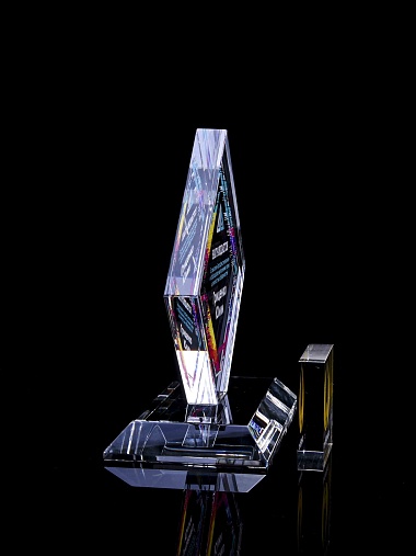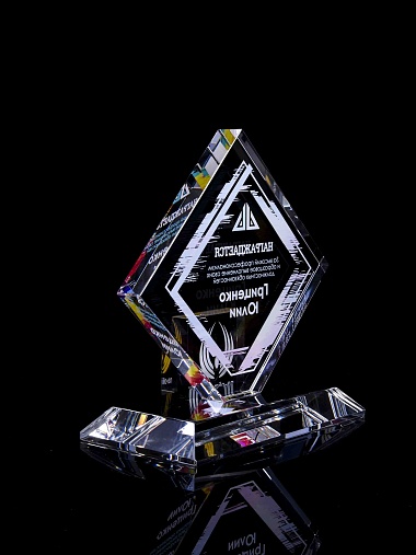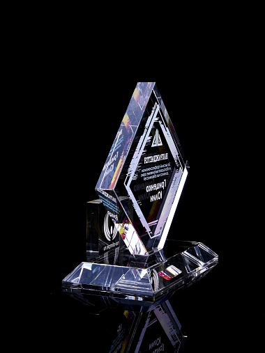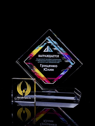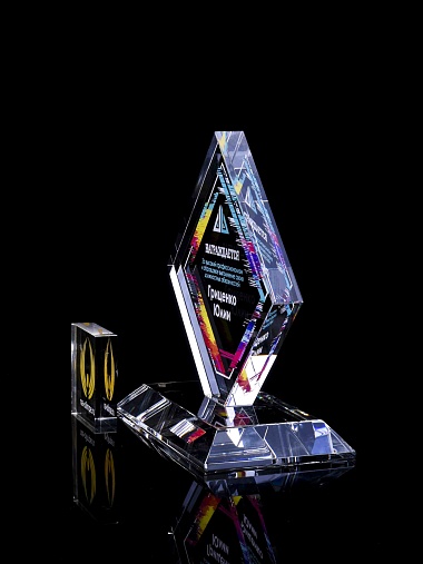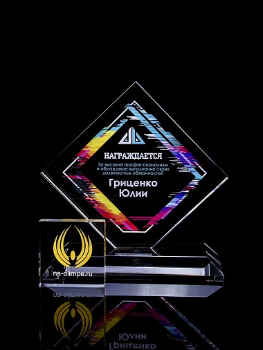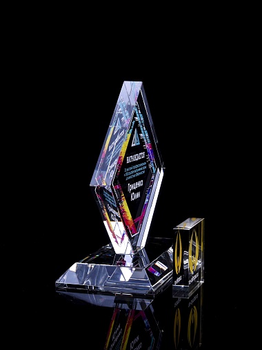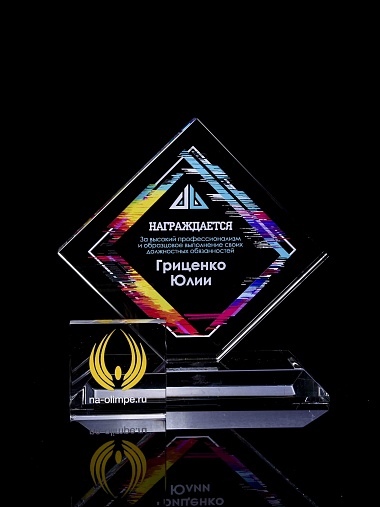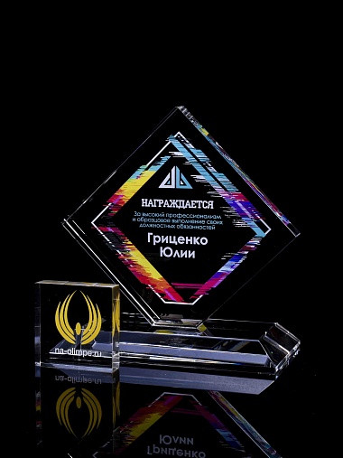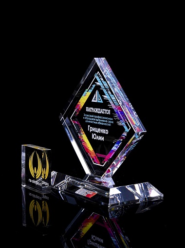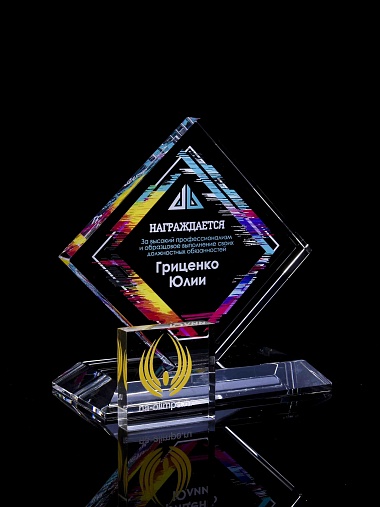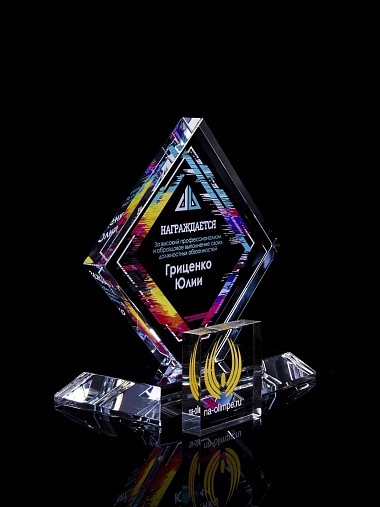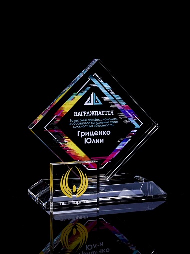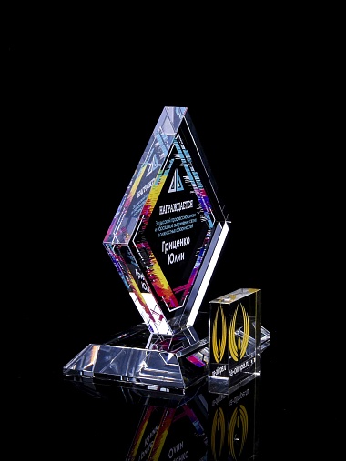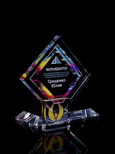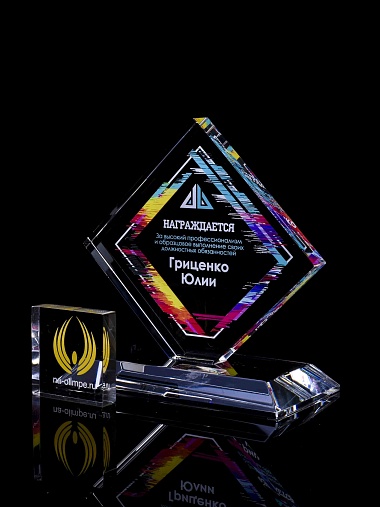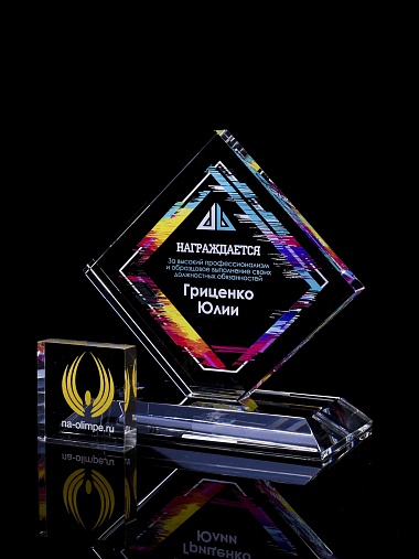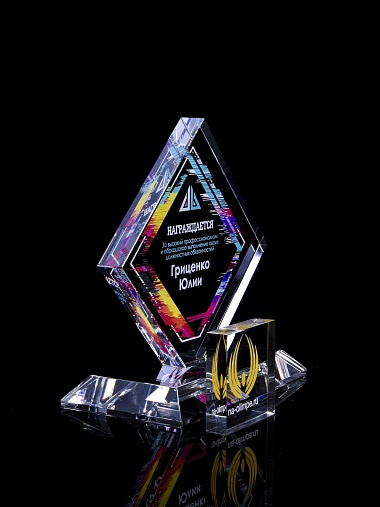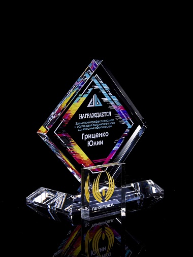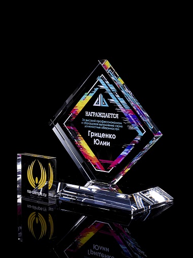 Стеклянная награда C35-120 с цветным нанесением, высота 12 см