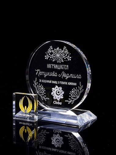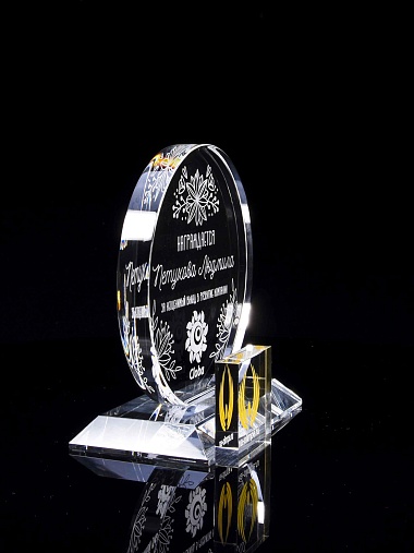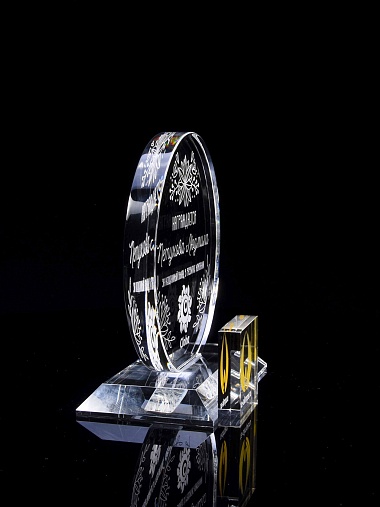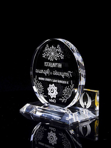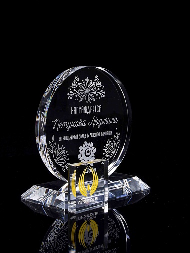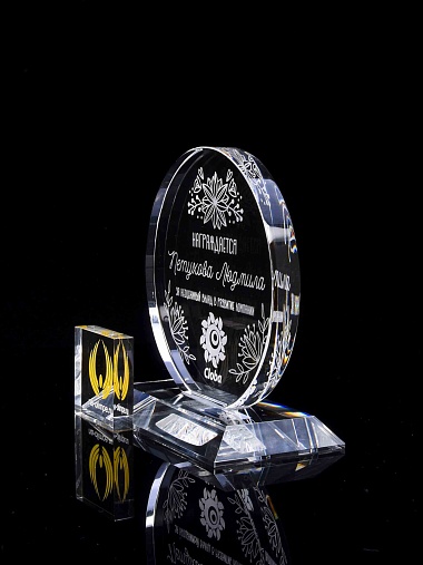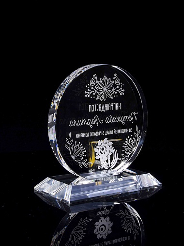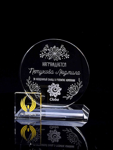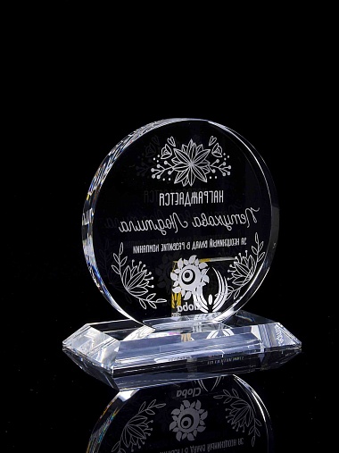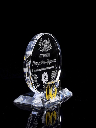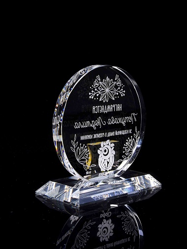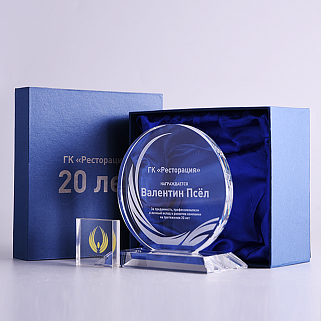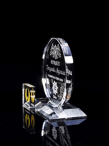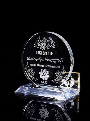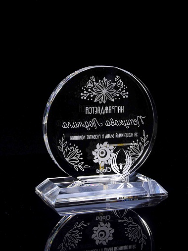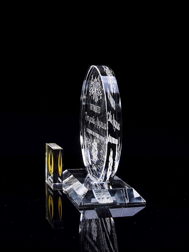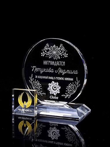 Закажите к награде дополнительно стеклянную медаль. Получится красивый солидный комплект!