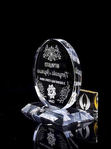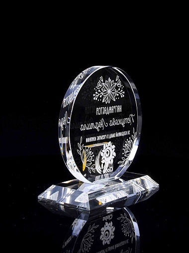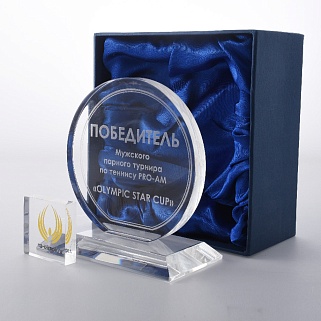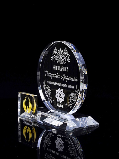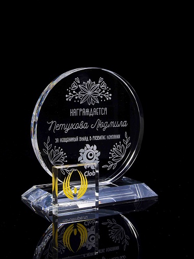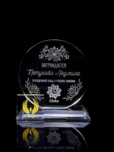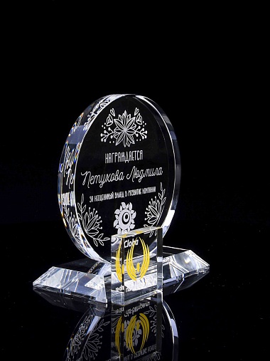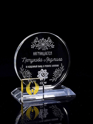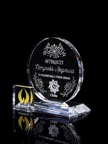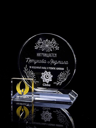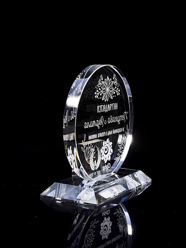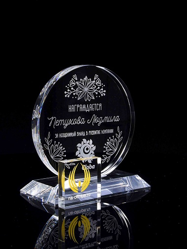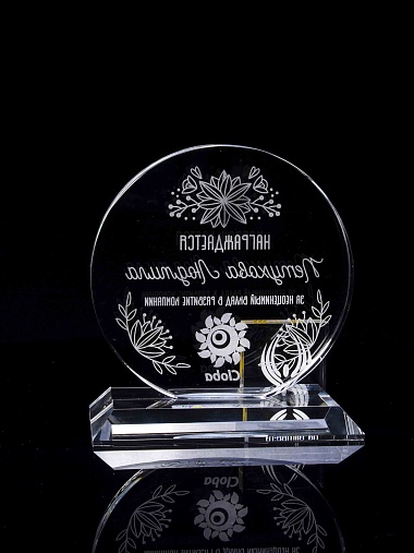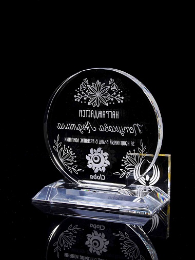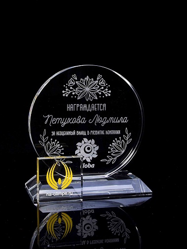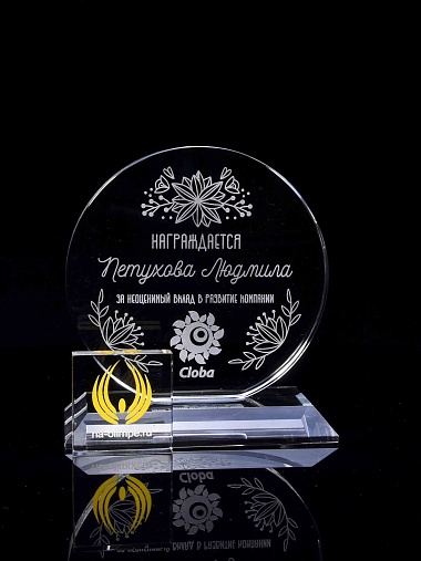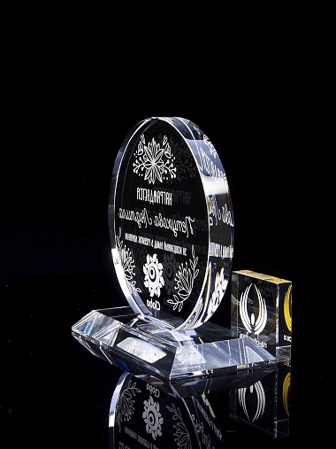 Закажите к награде дополнительно стеклянную медаль. Получится красивый солидный комплект!