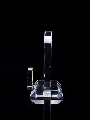 Стеклянная награда с гравировкой. Толщина стекла 13 мм. Поставляется в комплекте с подарочным футляром. Вес награды без футляра 470гр.  Стоимость указана за нанесение на одной стороне, гравировка выполняется на задней стенке награды.