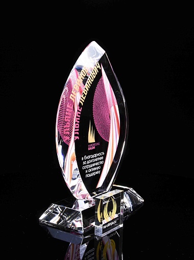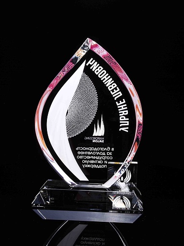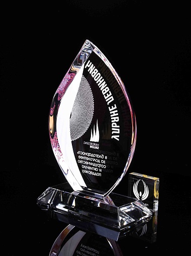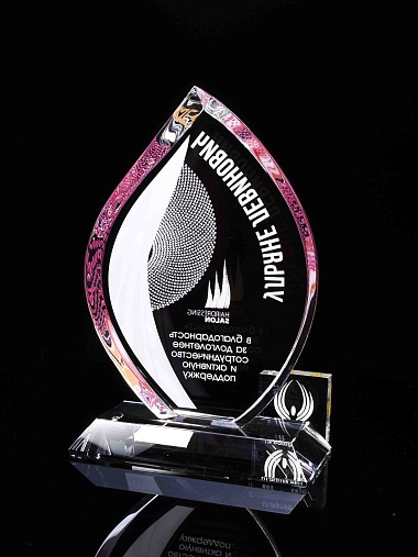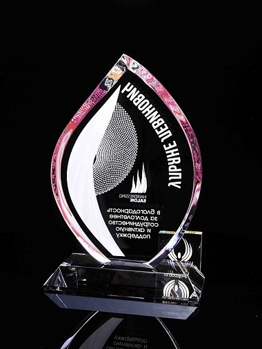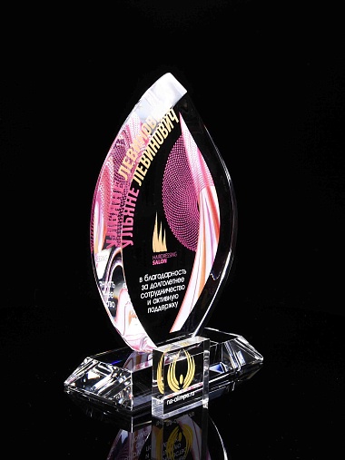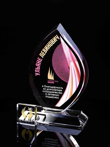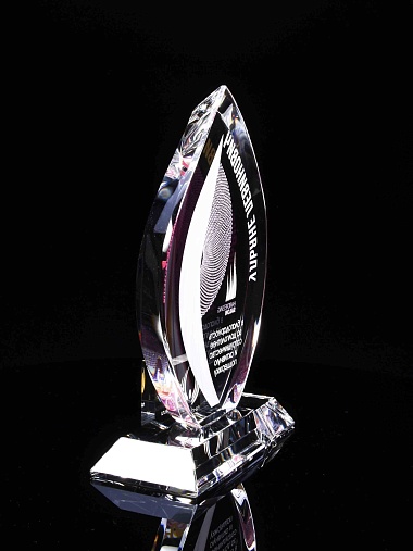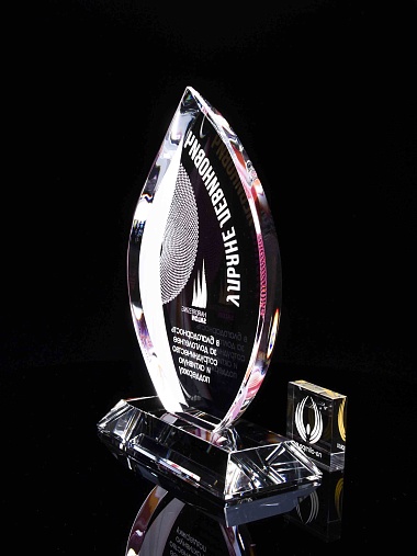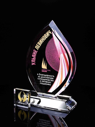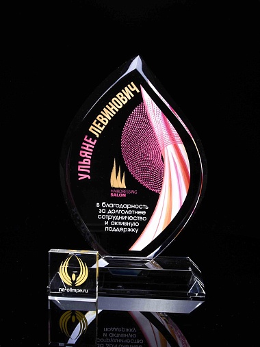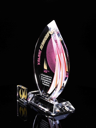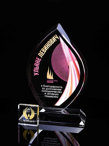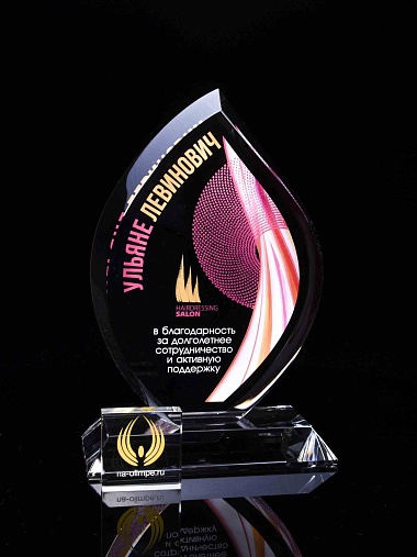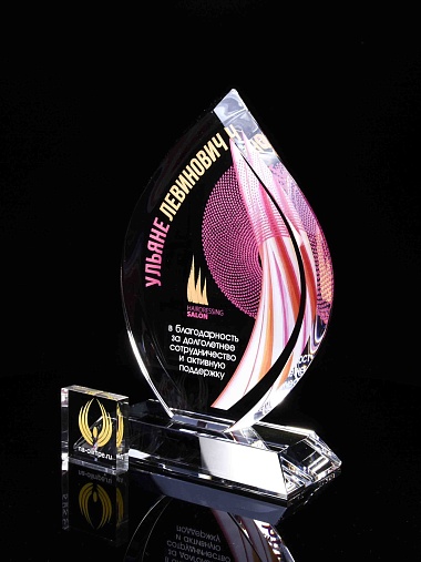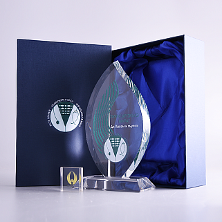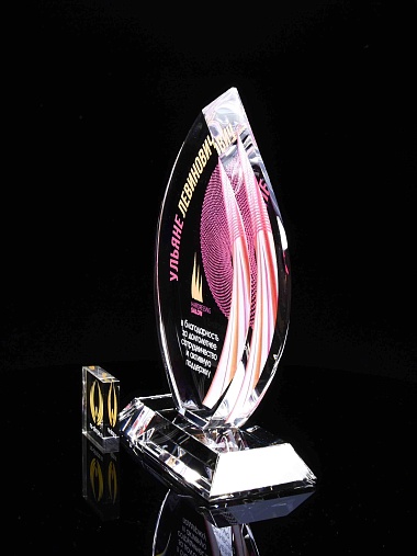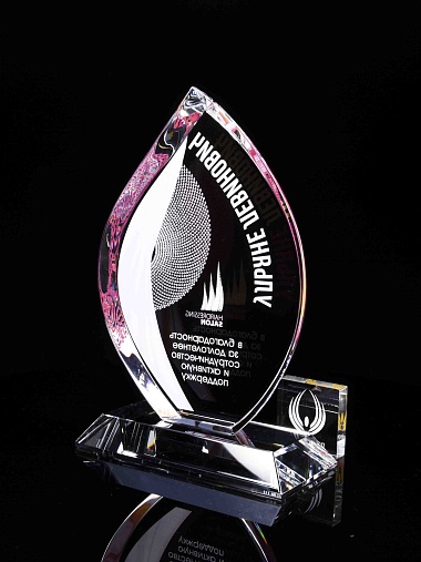 Стеклянная награда с полноцветным нанесением. Толщина стекла 19 мм. Поставляется в комплекте с подарочным футляром. Вес награды без футляра 1020гр.Стоимость указана за нанесение на одной стороне, печать выполняется на задней стенке награды.